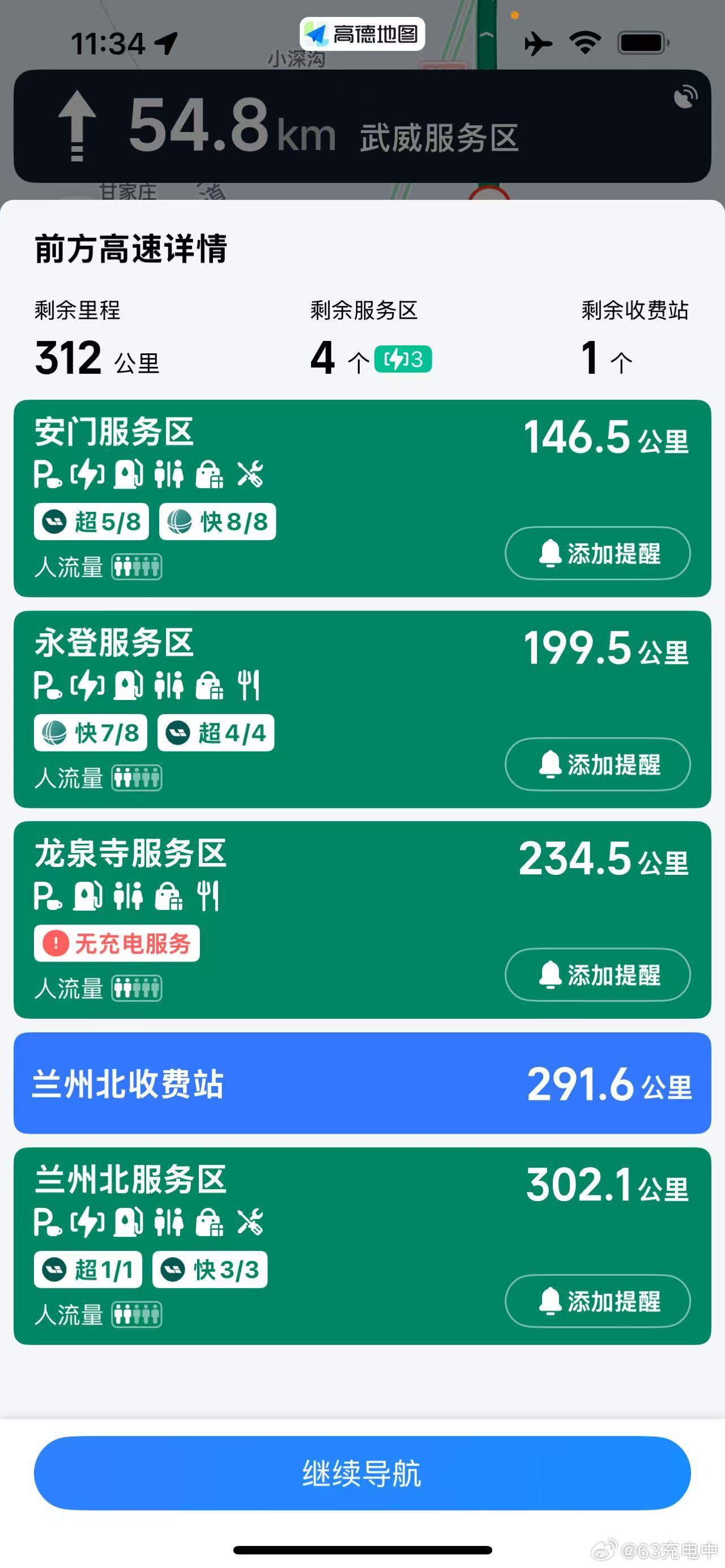 从张掖出来到兰州这段连霍高速,好多服务区都有理想 5C 超充
