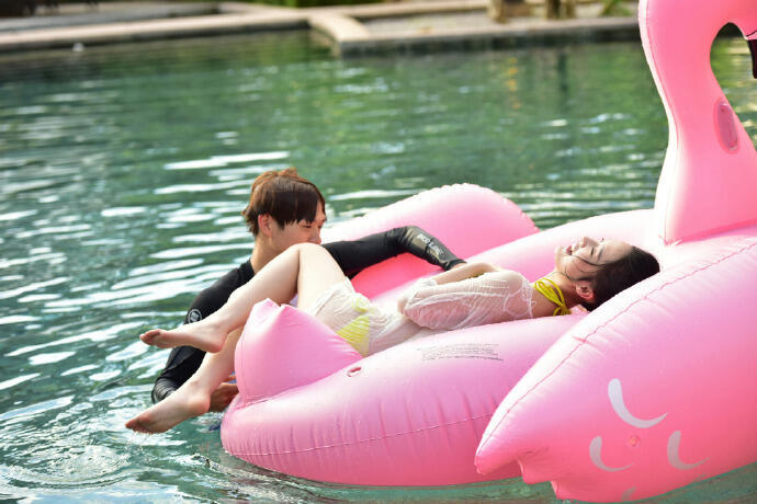李沁和魏大勋水里玩得好开心啊