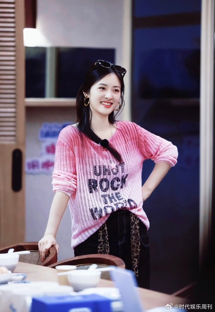 刘亦菲这条裤子挺养生,毕竟降温了肚脐眼必须护住啊