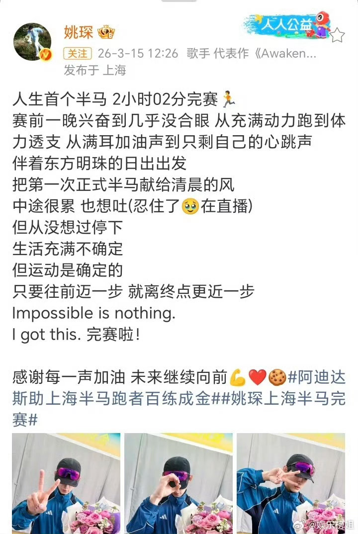 工作室骑车追姚琛姚琛跑马拉松也不忘饭撒姚琛跑半马把工作室跑成了追光者!说好陪跑