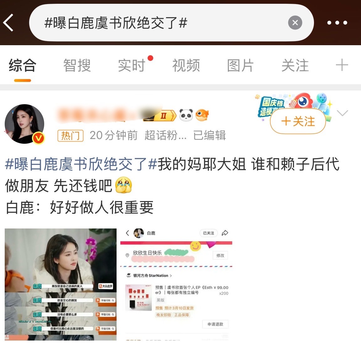 曝白鹿虞书欣绝交了男女不同赛道虞书欣wwzz