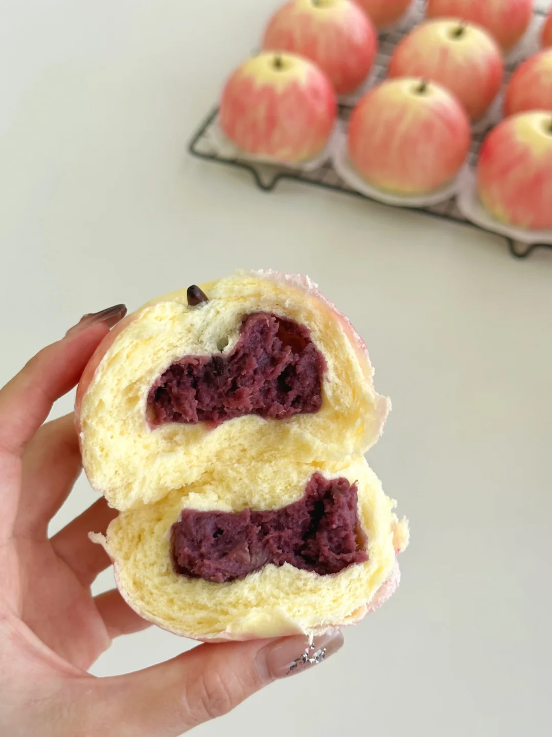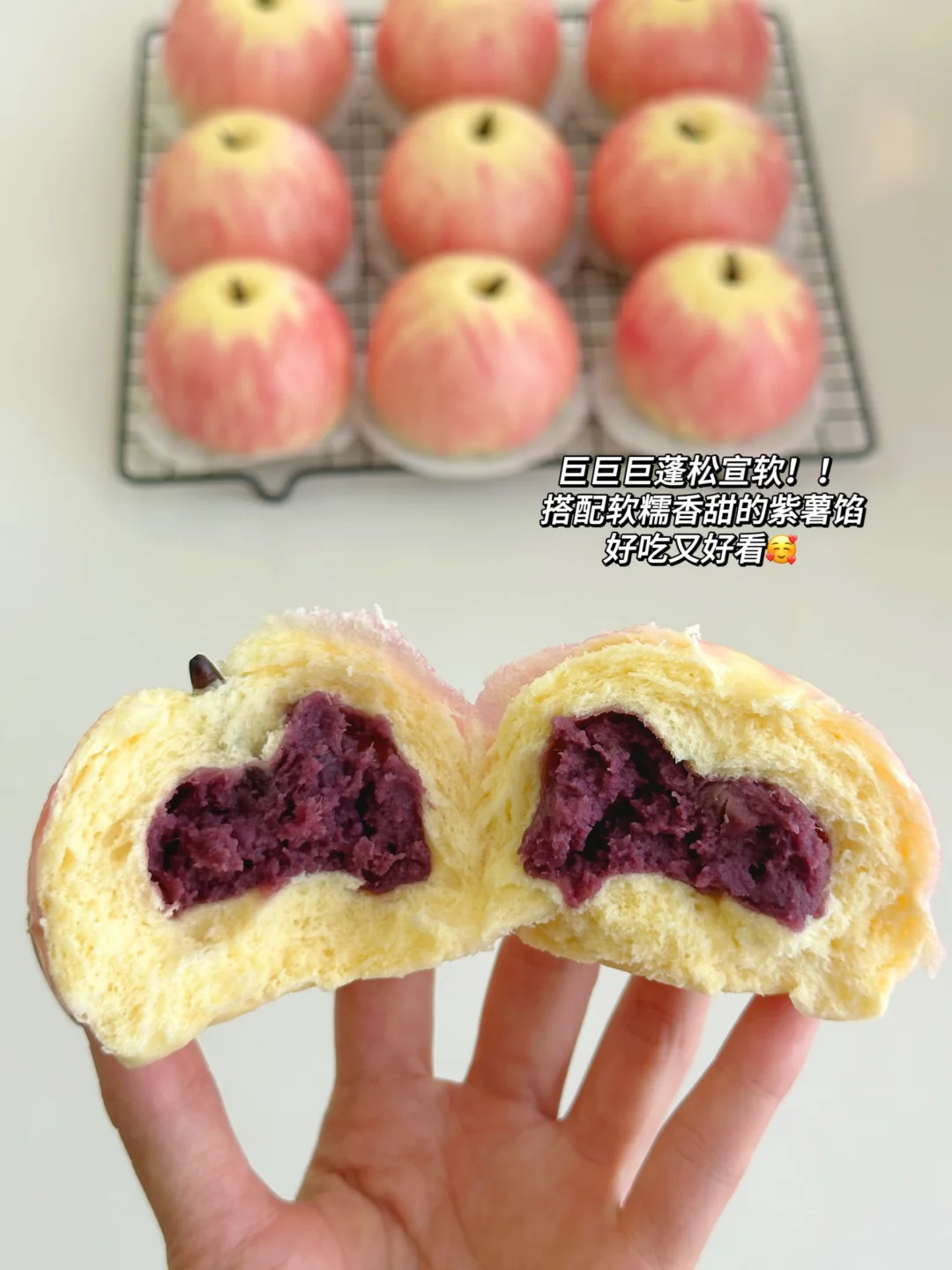 🥰周末愉快~ 今天跟大家分享一款仿真苹果馒头 看似复杂,但其实很简单 按照教程一步步操作 你也可以做出这么可爱的苹果馒头哦[自拍R] 内里是软糯糯的紫薯馅,大小朋友都爱吃! 也可以换成自己喜欢吃的任何口味 快快码住试试吧👋🏻