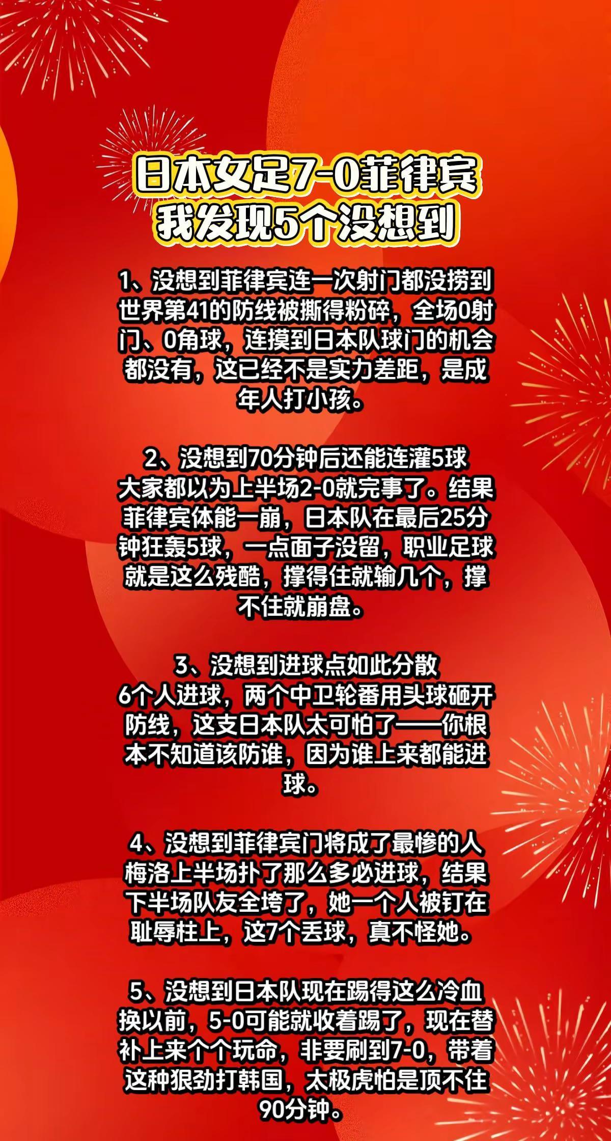 日本女足7-0菲律宾,我发现5个没想到。