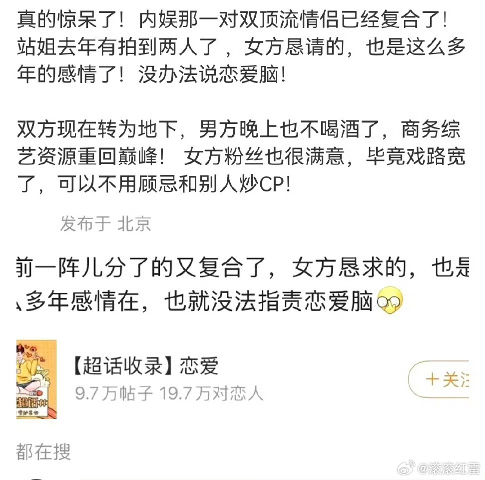曝双顶流情侣已复合真的惊呆了!内娱那一对双顶流情侣已经复合了!能是哪一对呢?说说娱乐圈吃瓜群众都着急了