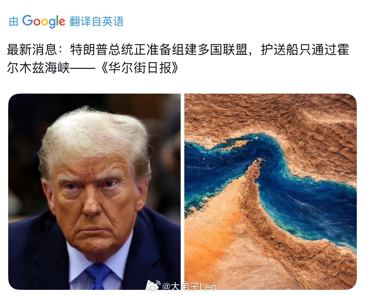 WSJ:特朗普将组建多国联盟,护送船只通过霍尔木兹海峡