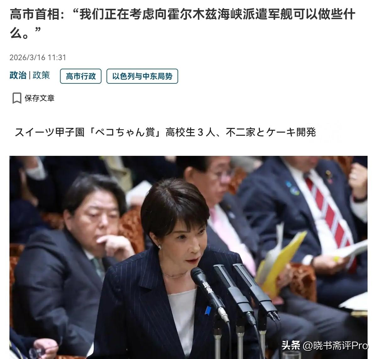 日本顶不住压力了!赫格塞斯一通电话之后,高市早苗的口风松动了!3月16日,根据产经新闻报道,在赫格塞斯跟小泉进次郎谈及日本派军舰到霍尔木兹海峡护航之后,16日在参议院预算委员会会议上高市早苗对此事也进行了回应。高市早苗表示,关于向霍尔木兹海峡派遣军舰一事,我们正在考虑。 日本正考虑如何在法律范围内保护与日本有关的船只及其船员的生命安全,以及我们能够采取哪些措施。而在此前,面对特朗普的施压,高市早苗则称,目前尚未收到此类部署请求,因此很难回答假设性问题。很显然,此前高市早苗声称派军舰是“假设性问题”,现在则在考虑在法律的范围内考虑派军舰一事。 无疑,这种态度的转变,充分说明高市早苗明显顶不住美国的压力了。事情是明摆着的,美国在制造问题之后,单靠美国的力量已经不足以解决问题了,美国意图甩锅卸责,让他国共同担责。但是,盟友们态度冷淡,美国当然是希望从听话的日本那里打开缺口。如果日本公开拒绝,这等于公开打美国的脸,美国当然不会善罢甘休。 因此,高市早苗不得不松口表示正在考虑。但是,从日本利益的角度而言,派军舰去护航,不仅违反宪法第九条“专守防卫”这一条,而且日本这样做会得罪伊朗,弄不好伊朗会攻击日本的货船,油轮进行报复。日本当然不想趟这一趟浑水。日本表示正考虑,而不立刻答应美国的请求,这当然是对美国的软性抵抗。但是,现在来看,日本有点顶不住了。