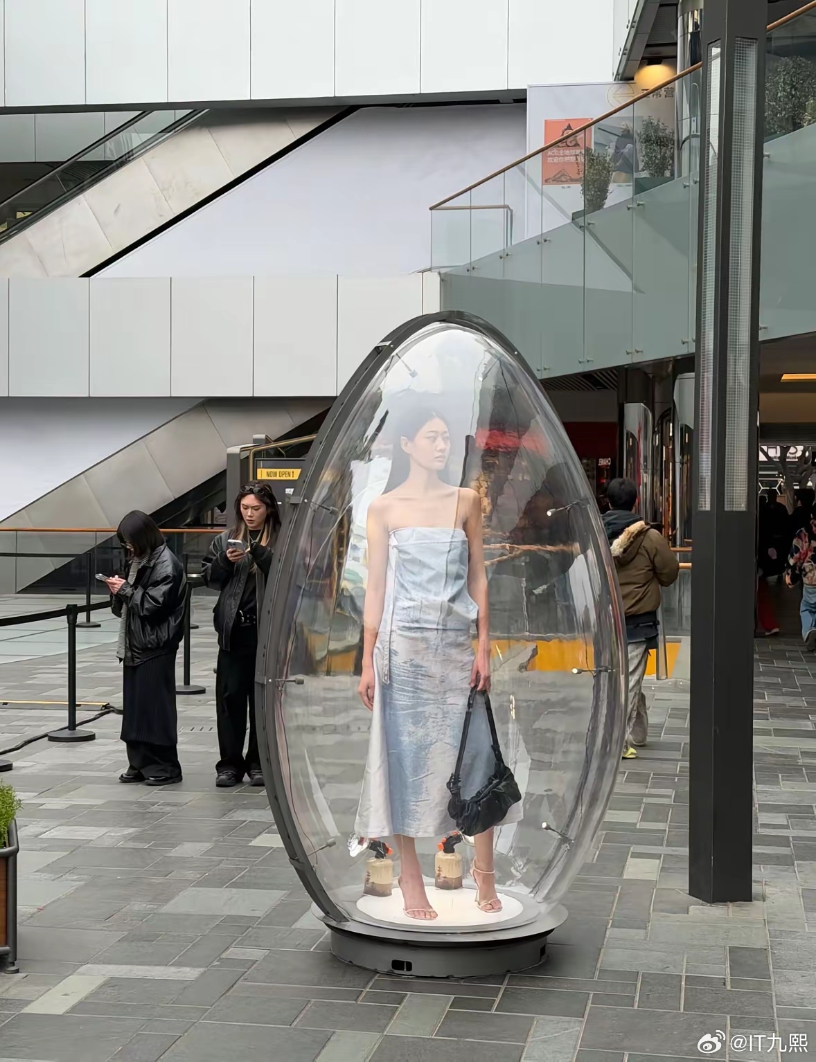 三里屯还是太前卫了,每个透明罩子里都站着一位模特,据说在里面待一天给4000