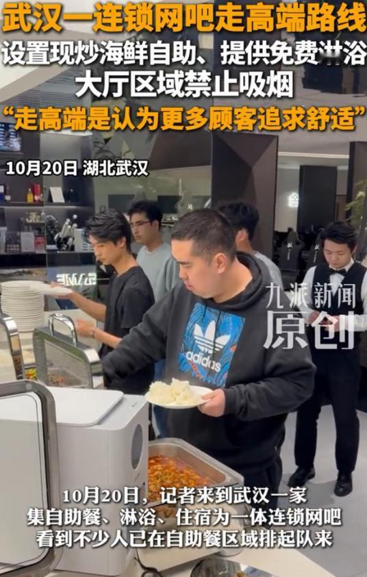 “思路打开了!”湖北武汉,小伙去上网,发现网吧里不仅有自助餐,还有免费的淋浴间,