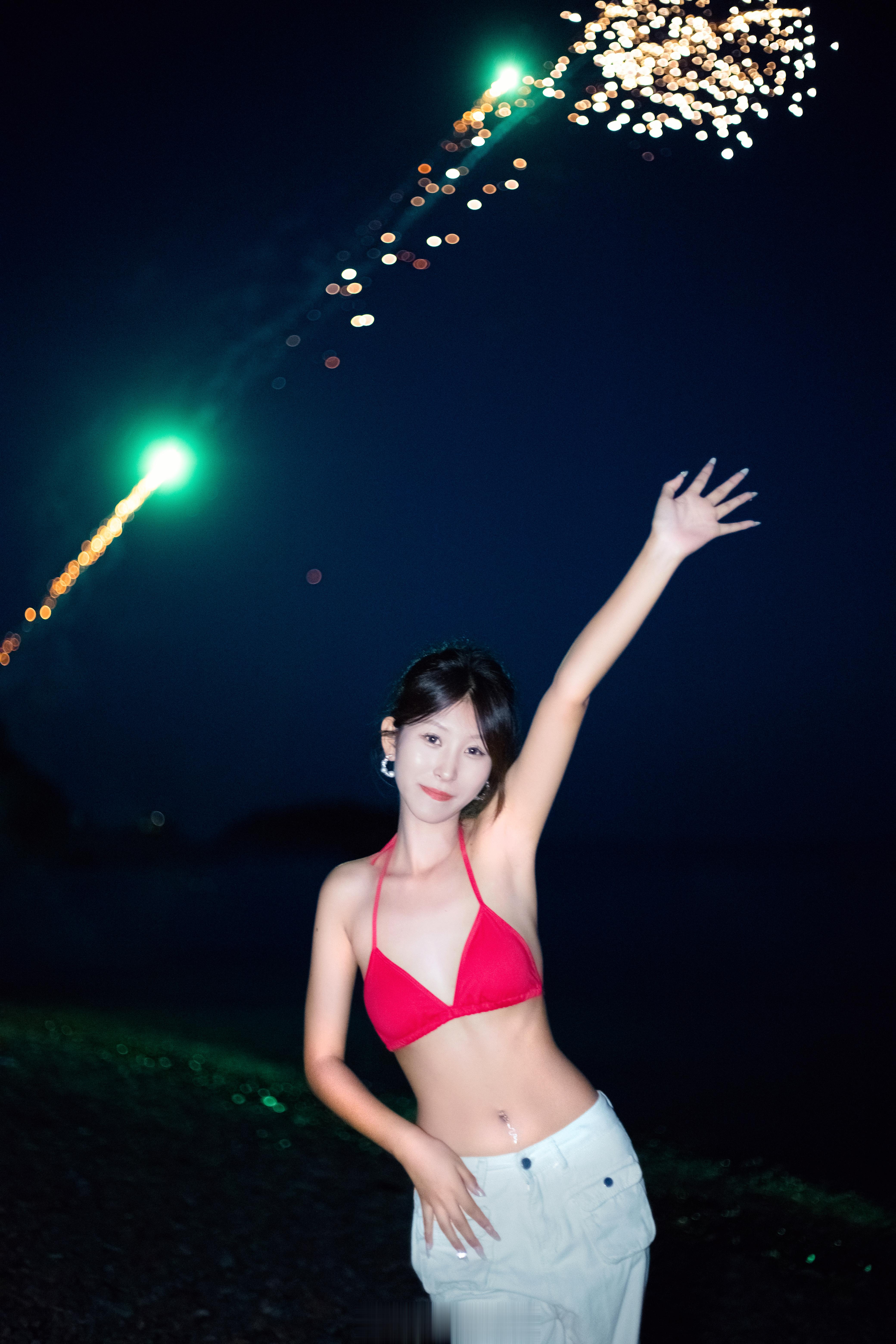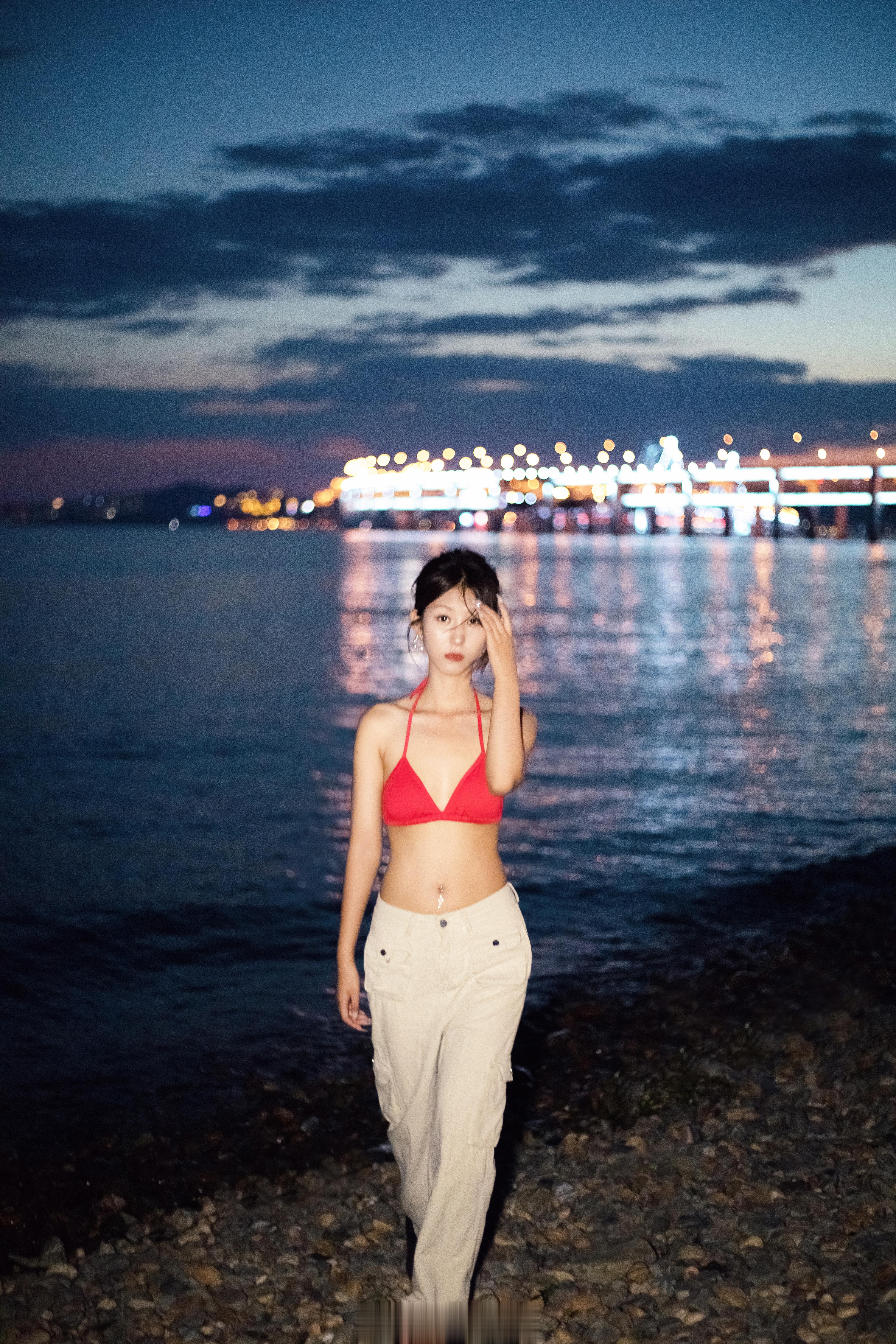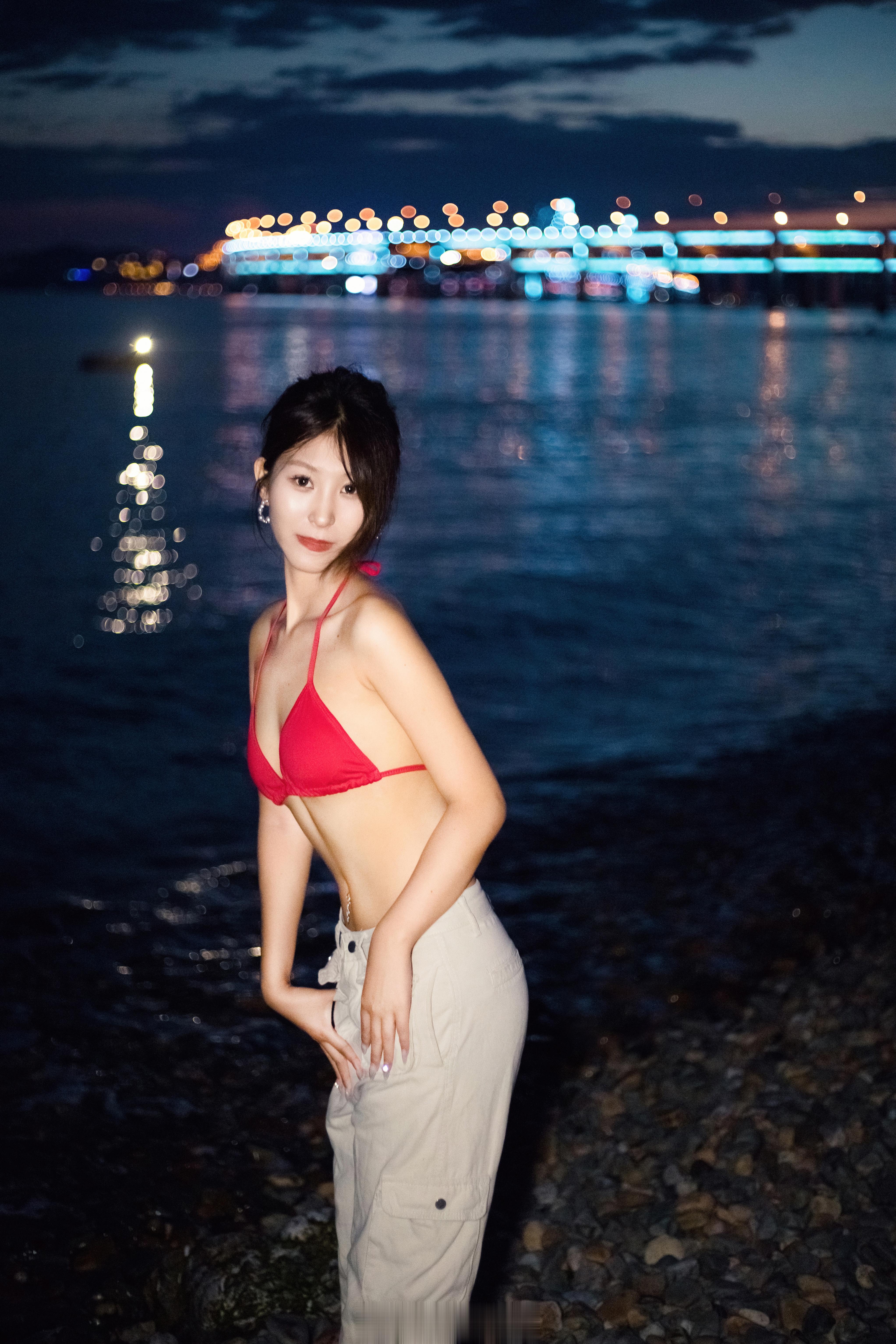 当蓝色的夜空坠落夜晚海滩当然要拍👙呀#大连约拍[超话]##比基尼##泳衣##拍