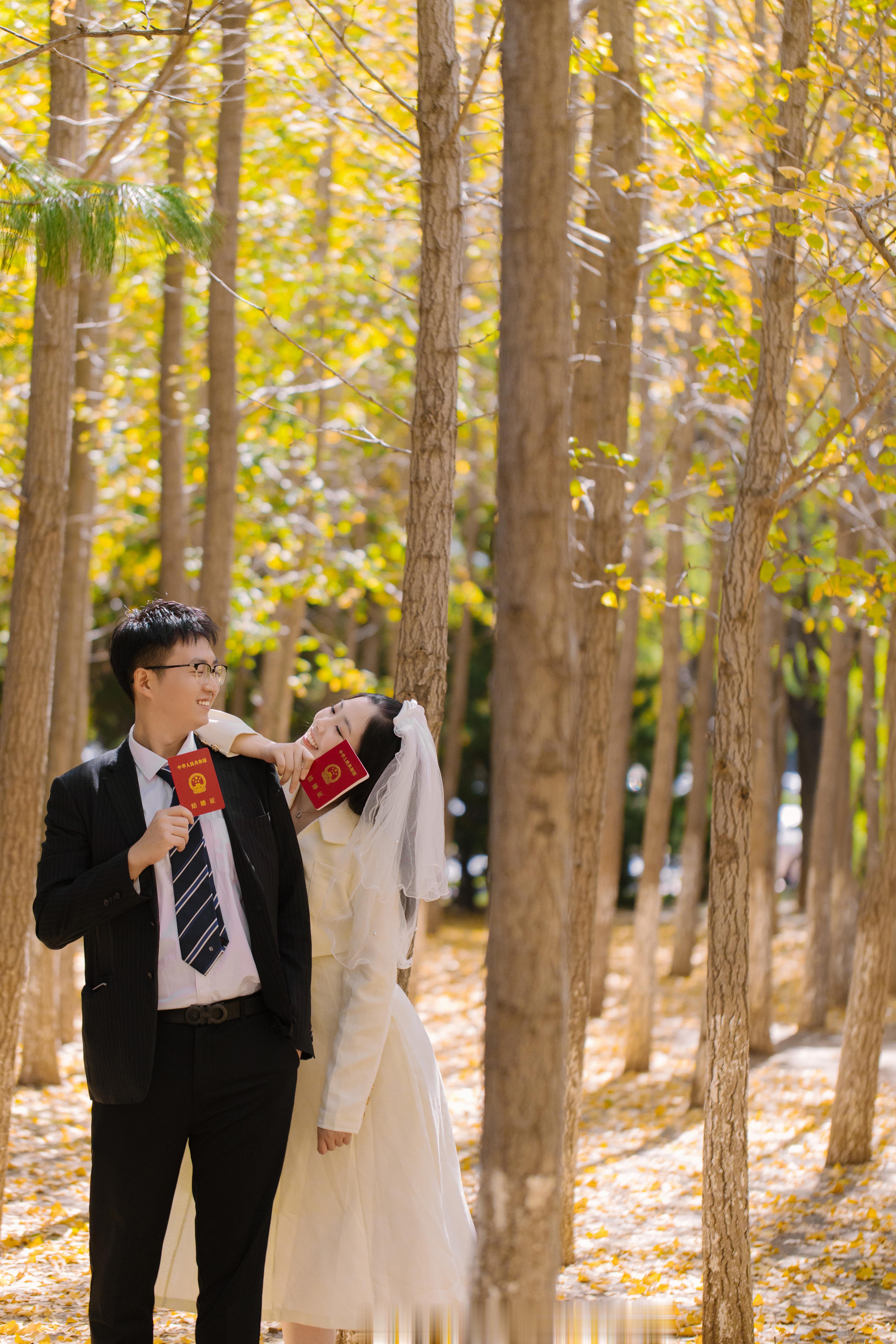 领证跟拍遇上金黄色的银杏叶风里全是秋天的味道#大连领证跟拍[超话]##大连约拍[