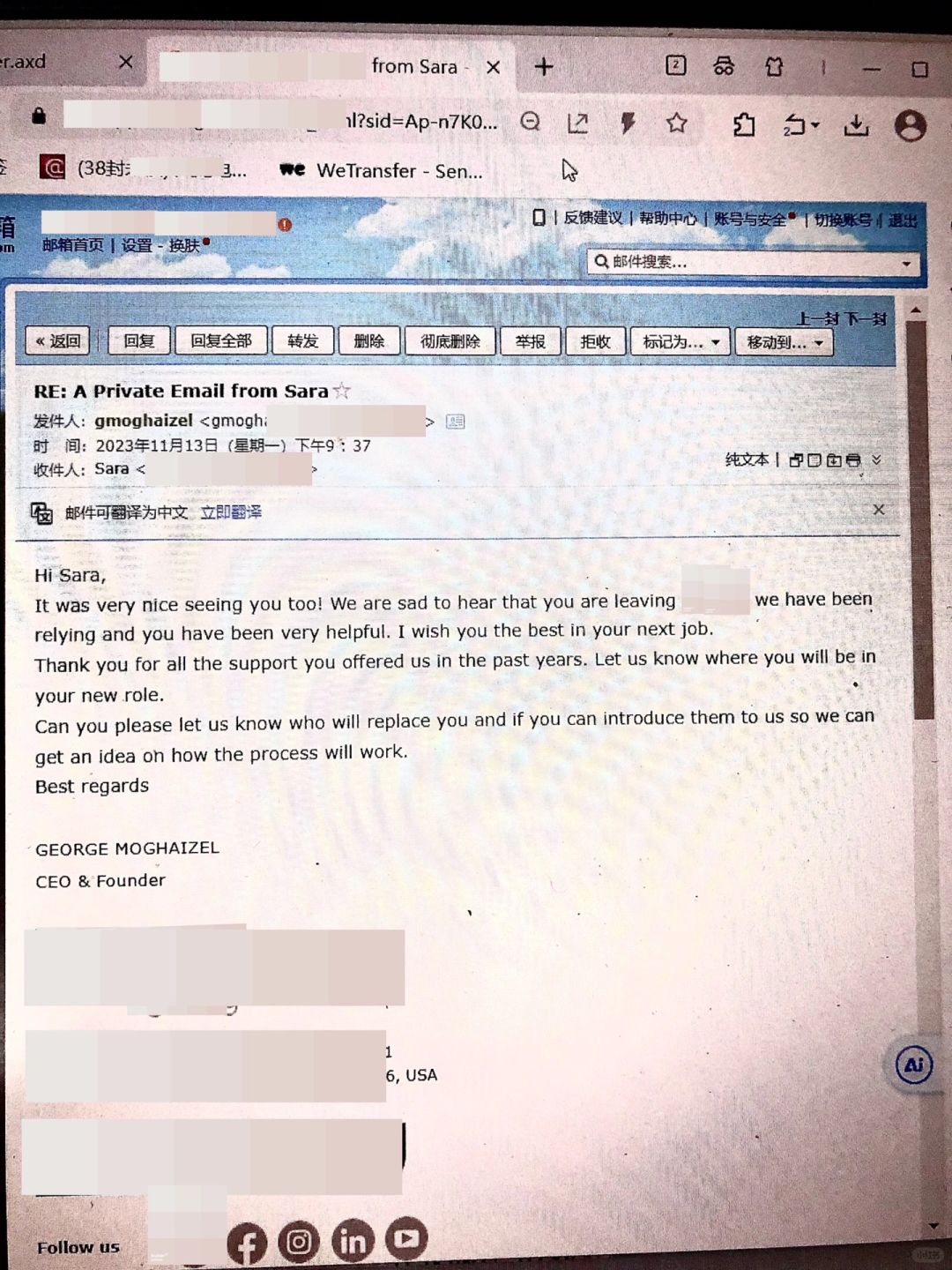 前几天发了一封📭 跟客户说, 打算不干了, 客户给我回📧了。 [暗中观察R]