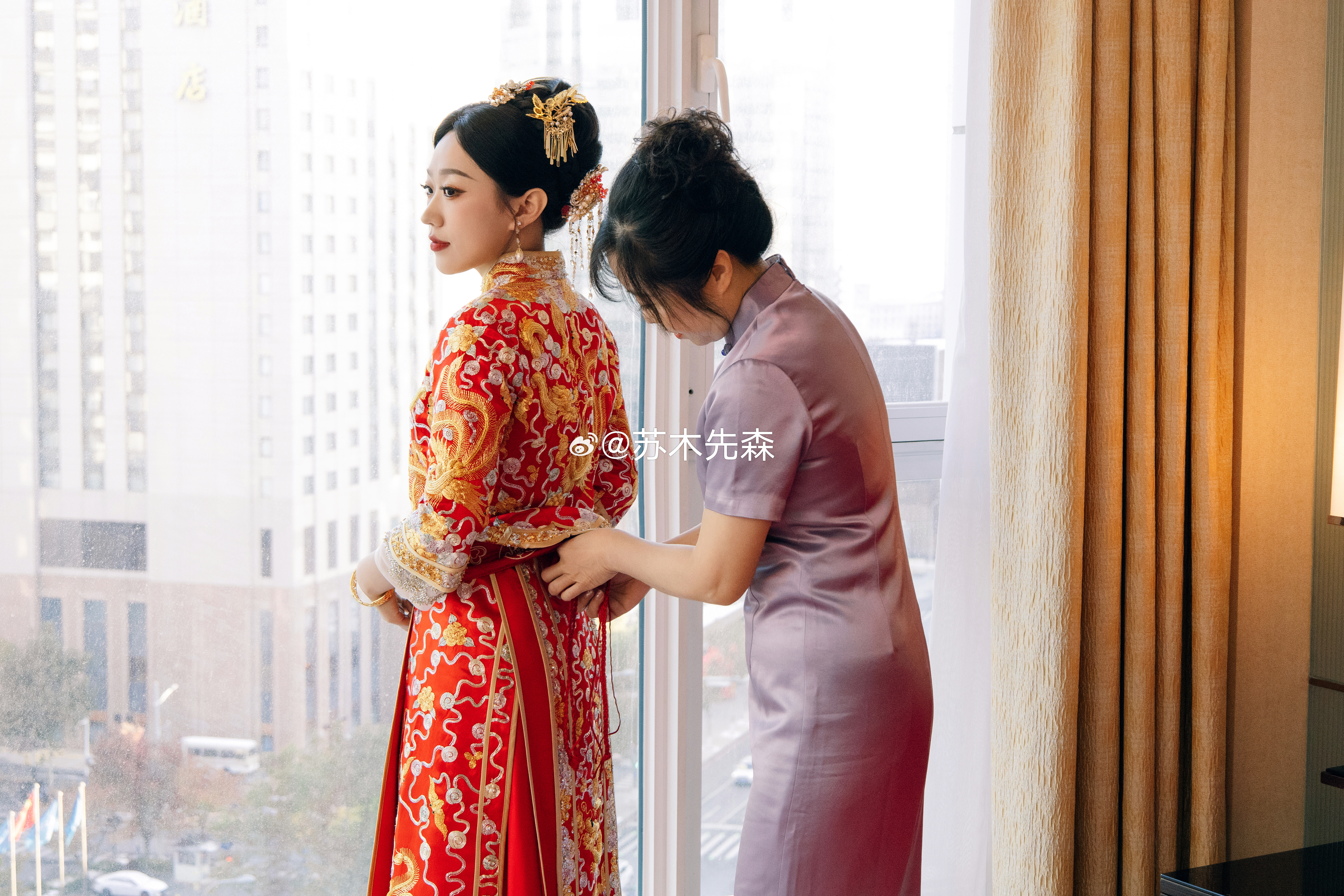 婚礼跟拍同时有两个摄影师一起拍新娘,我用我擅长的风格拍摄写真一样的松弛自然感,另一个机位拍摄标准婚礼跟拍姿势,就会让新娘得到两种不同风格的照片。