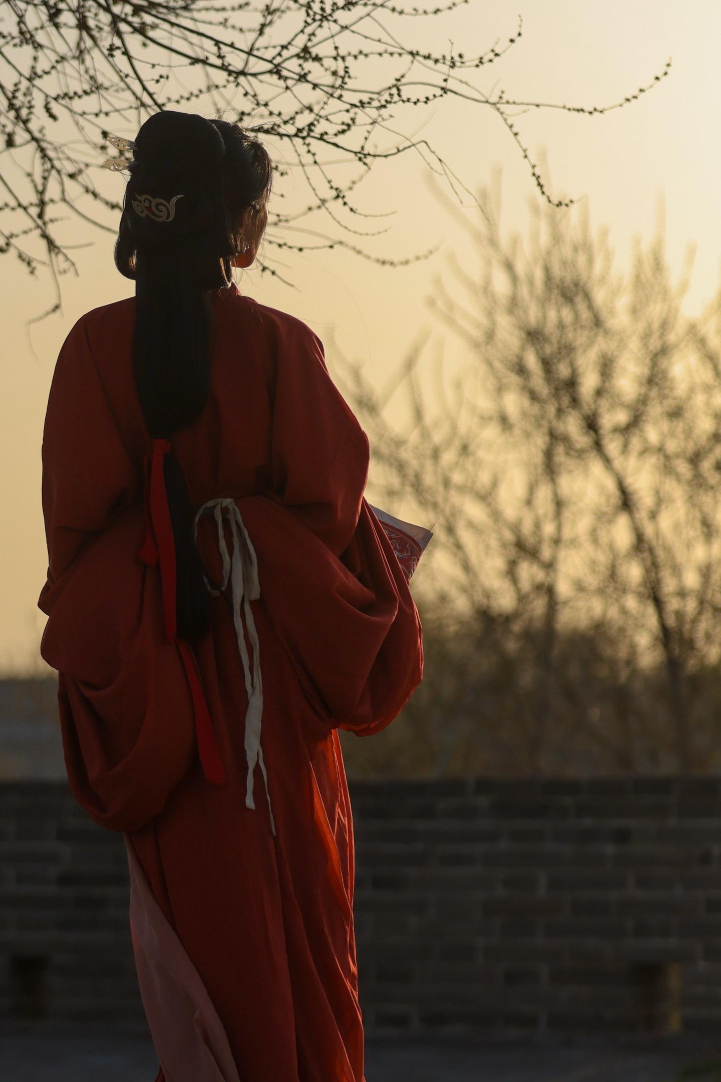 今天拍摄东方美学的意境之美——“她走在这片温热的红里,周身却浸着雪的清寒。”