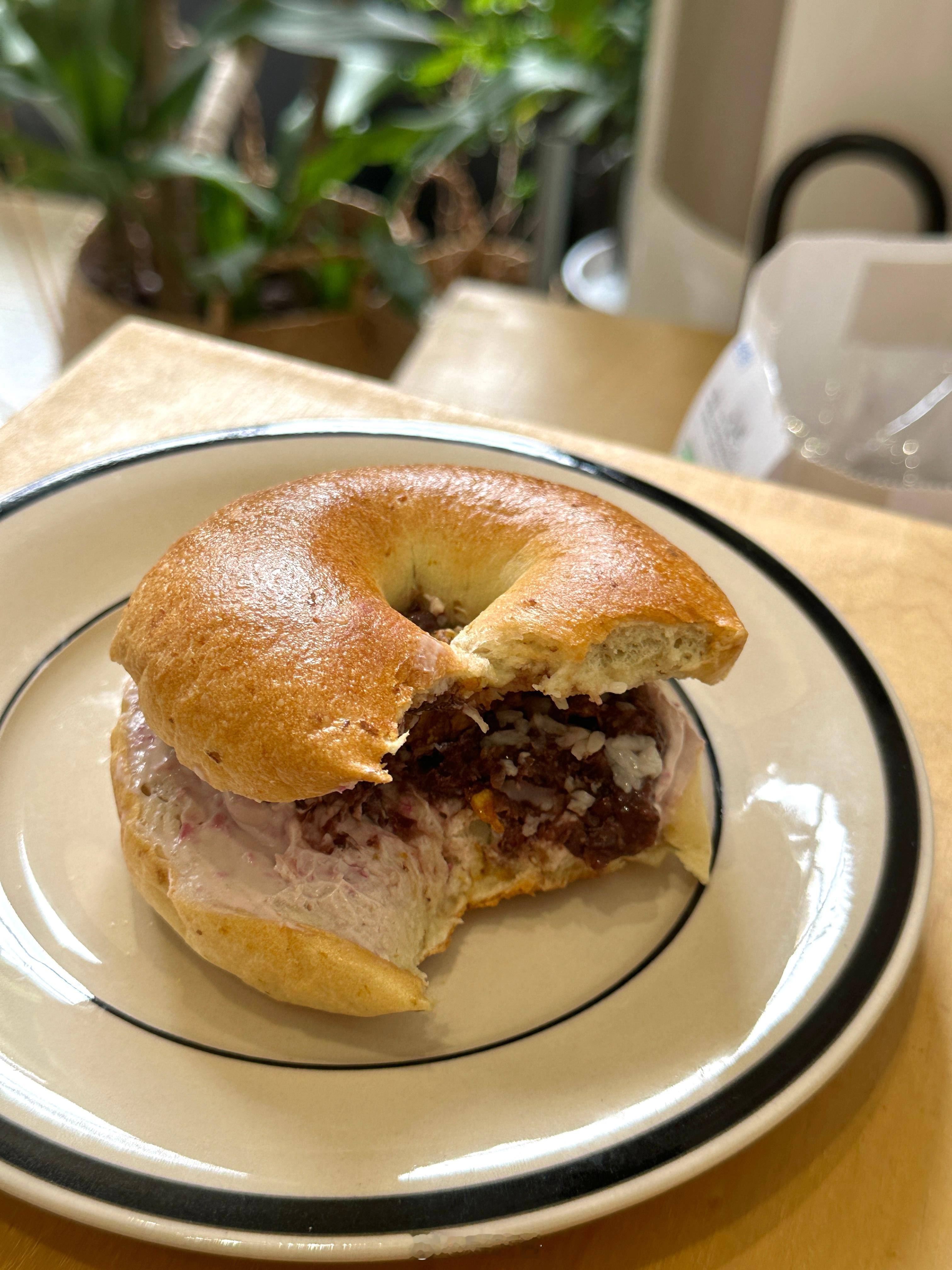 好久没去蒸汽店里了,这次完全是为了红豆玫瑰乳酪贝果去的,这种🥯在店里吃的幸福感是无敌的!!