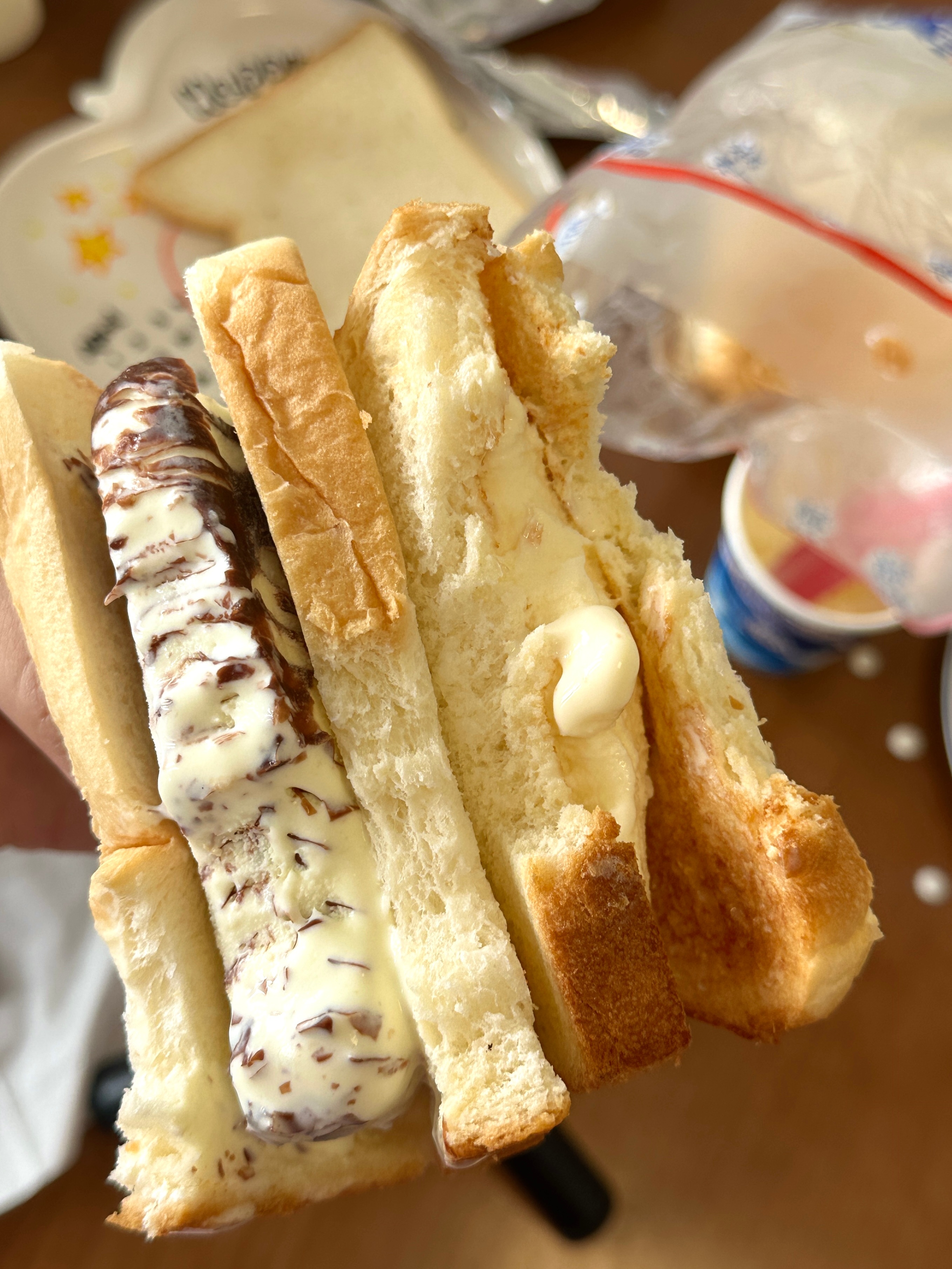 #夏天面包就要这样吃#我感觉!夹随便/巧乐兹/奶砖/苦咖啡都会很好吃!!烤吐司更