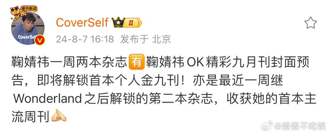 #鞠婧祎[超话]##鞠婧祎金九封面#鞠婧祎这样的一个封面真的是相当的优秀,而且我觉得你从侧面的鼻子看着也非常好看,对于我们来说是一种电子榨菜