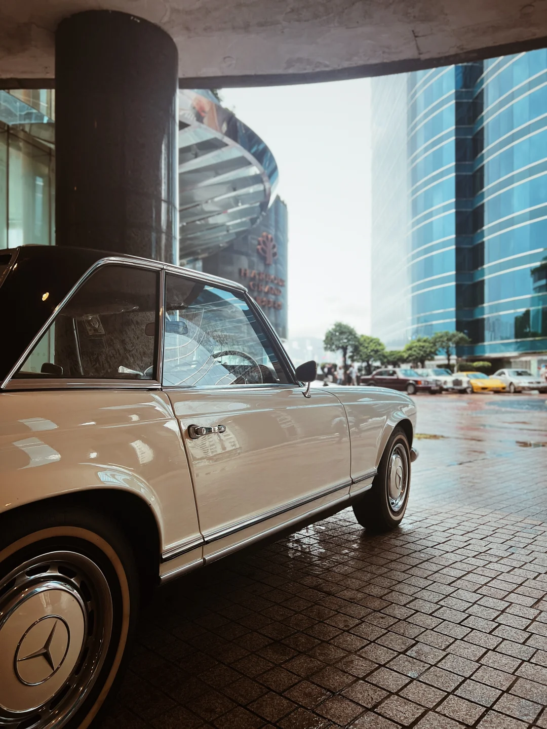 近日阴晴不定的天气也不减一帮老爷车车会会员聚会的热情。 今天最喜欢的是这辆1969年的奔驰280SL,黑白搭配特显优雅。其类亚洲宝塔的独特硬顶设计,也给了这代W113”Pagoda”的绰号。 另外比较喜欢的有993及日产Figaro - 特别是后者那保存得极好的棕色内饰,弥漫着一股浓烈90年代复古车的艺术气息。
