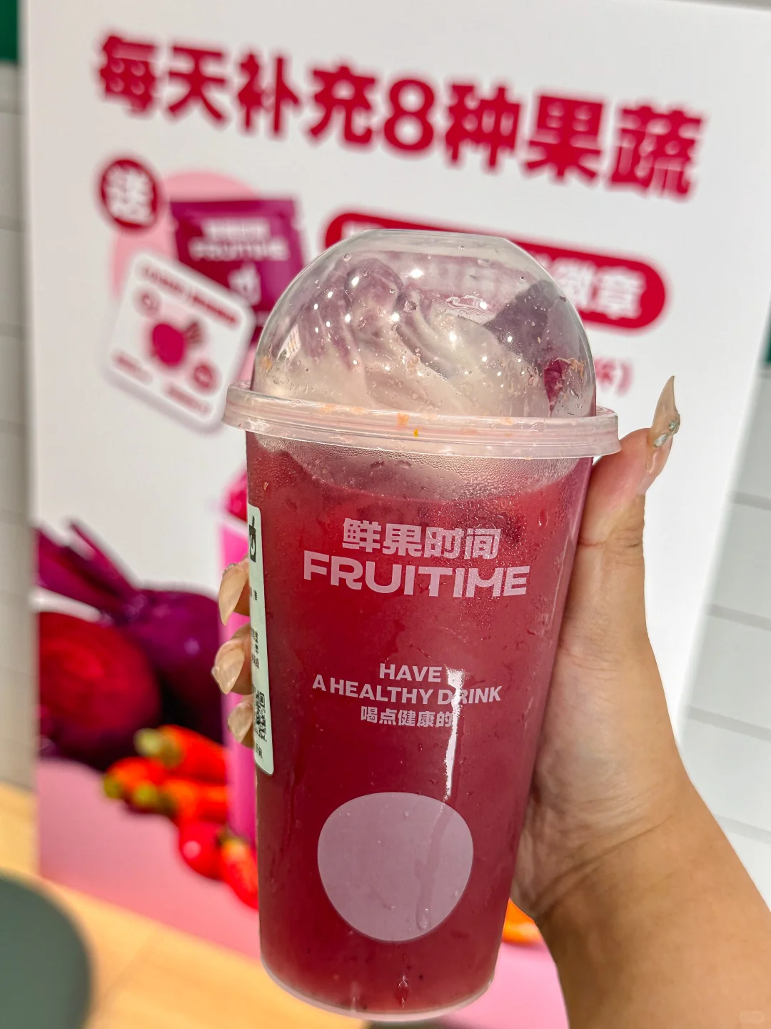 不爱吃蔬菜水果的小宝有难了… 因为这个果蔬茶ta是真好喝!! 甜菜头/紫菊苣/蓝莓/小番茄/ 苹果/雪梨/胡萝卜/橙子 一杯小红杯就能补充8种果蔬!! 满满的维生素和花青素 轻松喝出好气色🥰 现在喝小红杯还能get果蔬徽章盲袋 好可爱好精致 收集狂魔狂喜~