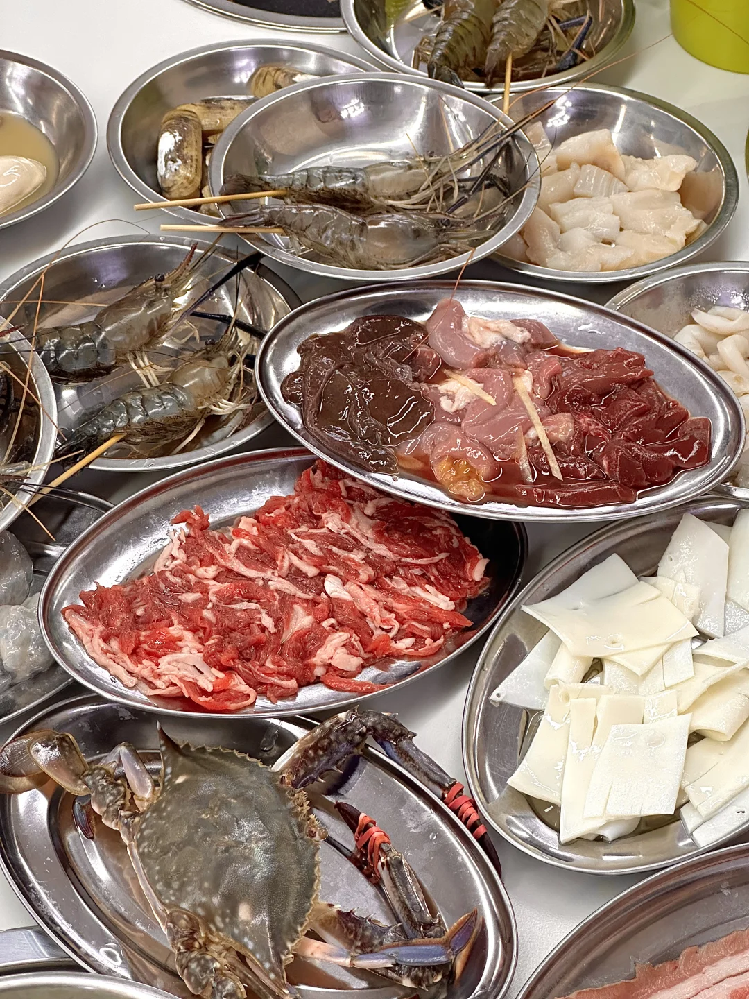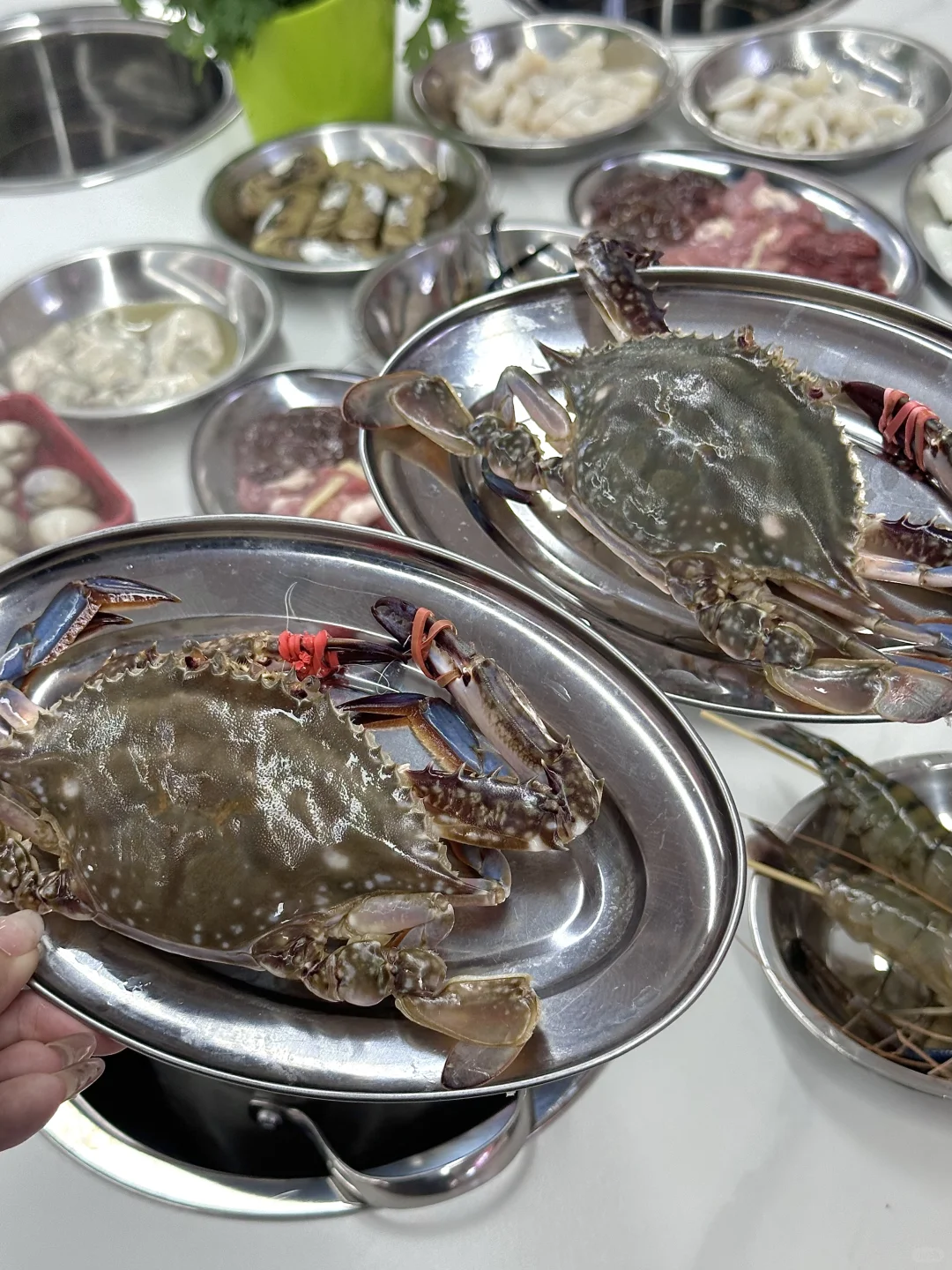 一次就爱上的粥底火锅…都是明档 巨巨巨新鲜 先涮海鲜再涮肉三下蔬菜后喝粥 黄蚬子和罗氏虾一定要吃 最后锅里的精华都煮在粥里了 超鲜美 悄悄说:酸汤锅底也很优秀🤤 蘸料一定要加花生酱柠檬叶和小青柑 嘎嘎好吃👍