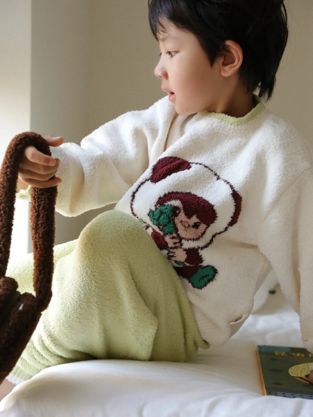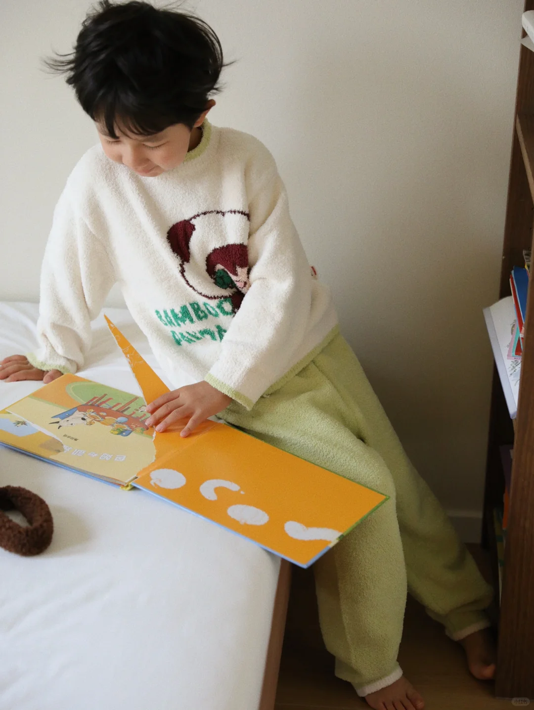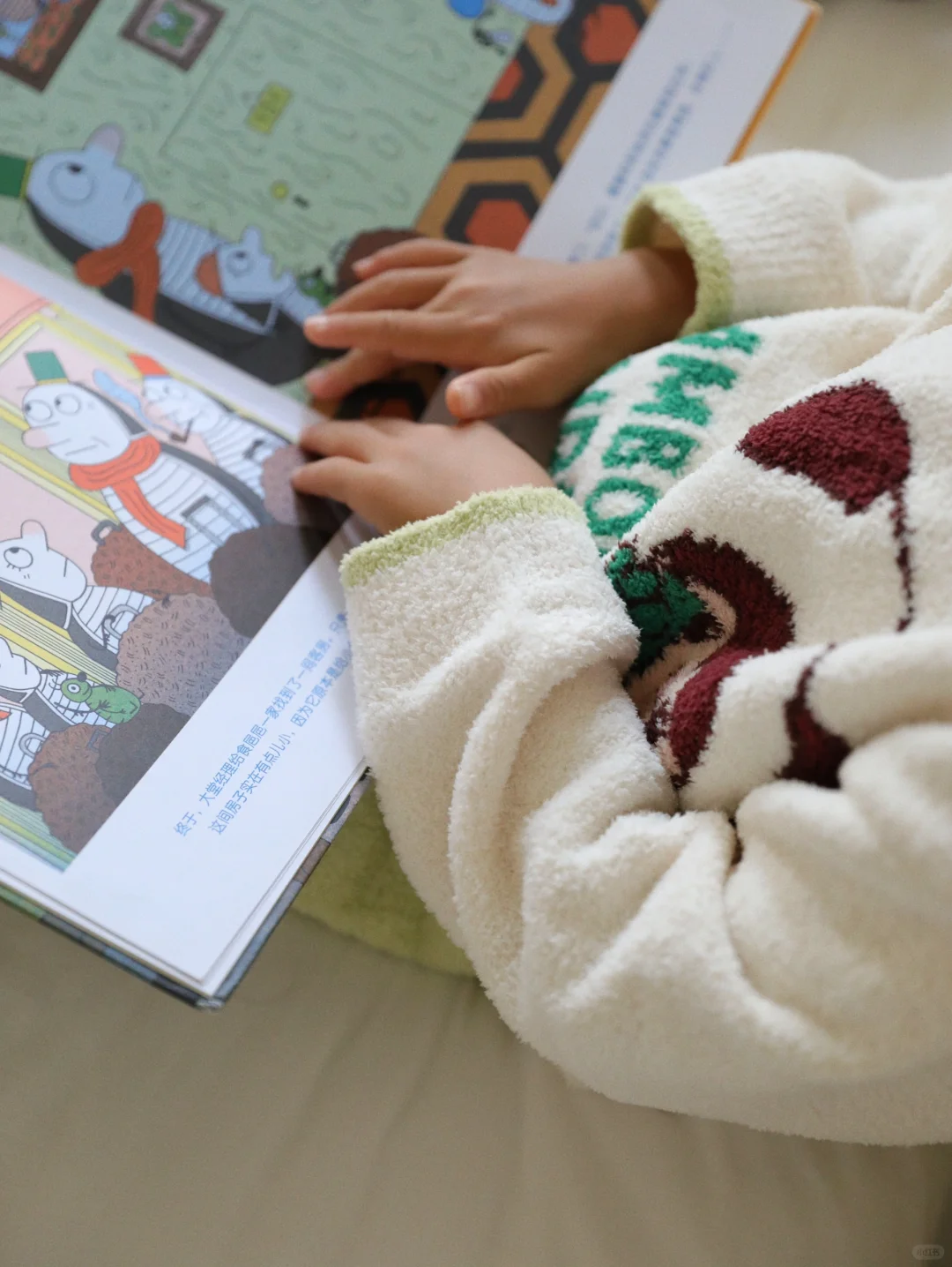 睡到自然醒 然后无所事事 早晨的昆明已经渐渐变冷,十多度的气温 还好有i-baby x Outlast泡泡玛特联名恒温家居服陪伴 家居服采用德国进口Outlast太空服科技材料,可以动态调温,宝宝玩耍出汗,不用担心着凉 高品质羽毛纱蓬松柔软,上身轻盈舒适,秋冬的刚需必备好物 泡泡玛特的联名设计软萌可爱,假期居家也可以很出片 今天小家伙起床在书柜里发现了久违相见的“老友”《包姆和凯罗》,看的是津津有味,乐呵呵。 理想的居家休息日,便是这般。