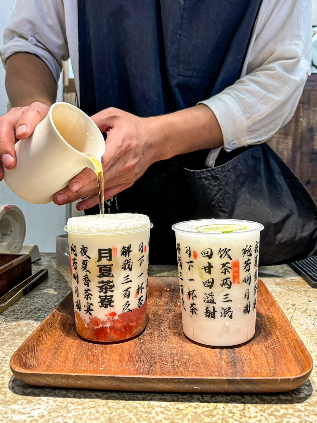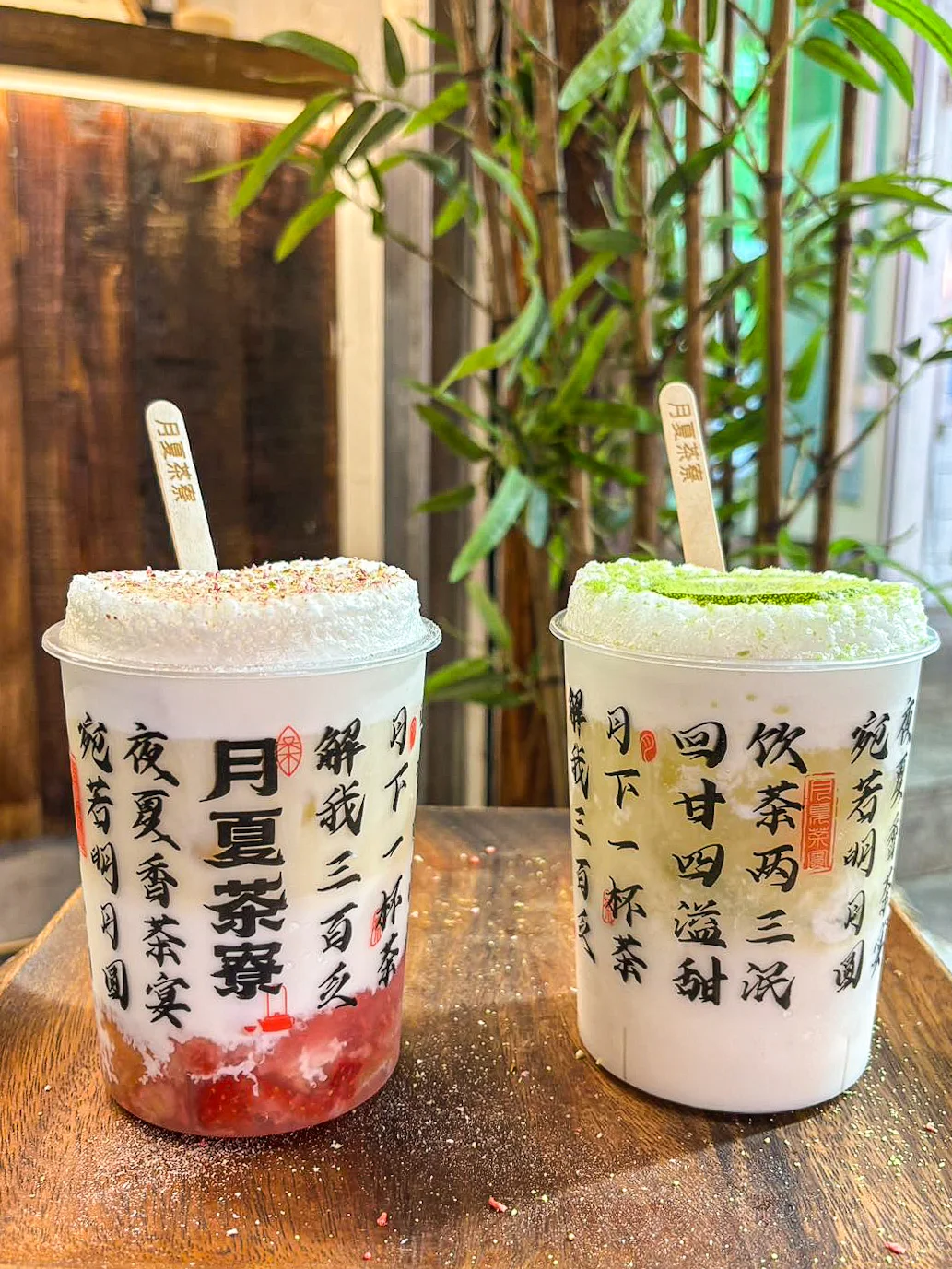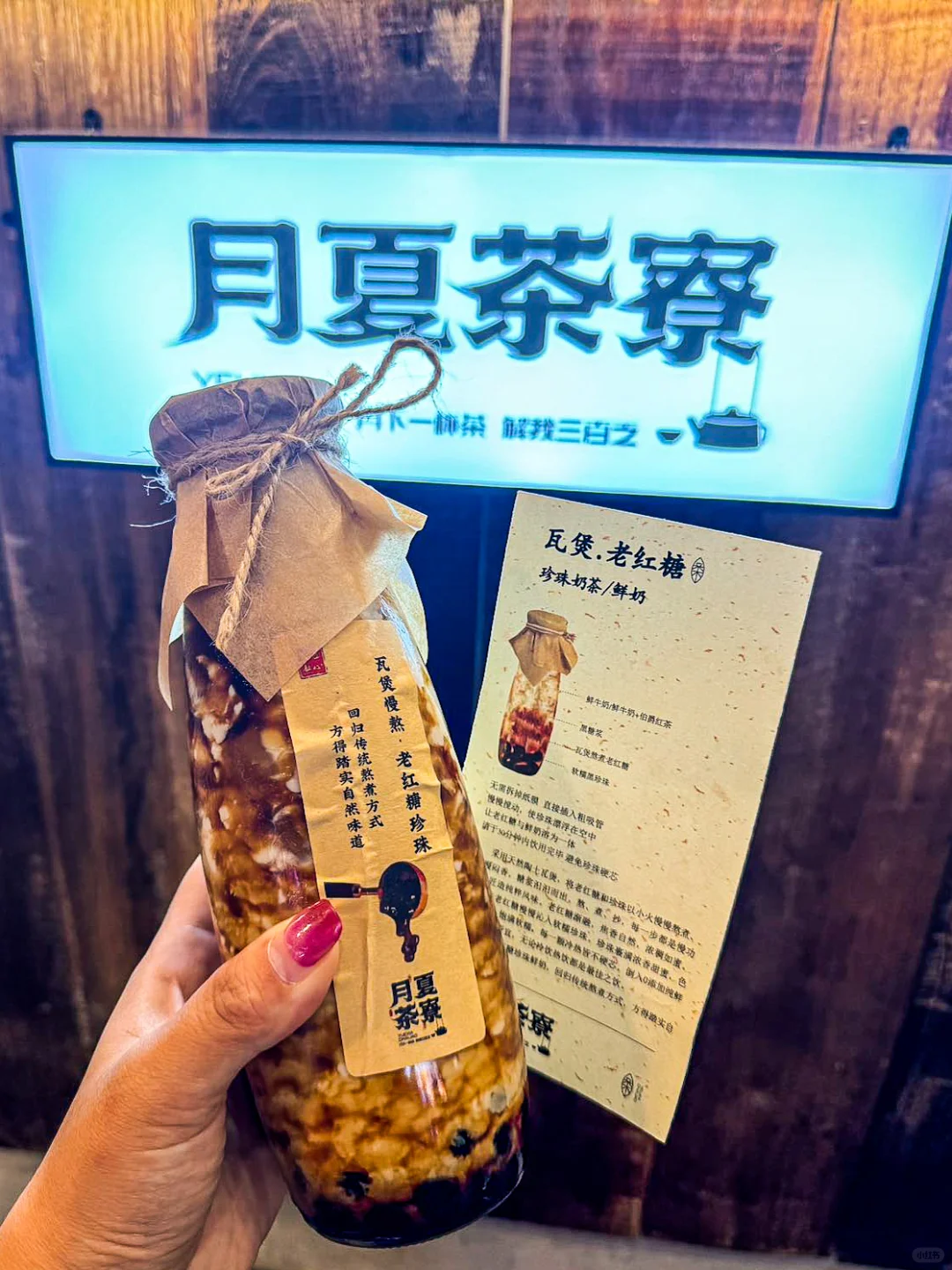 啊啊啊瓦煲现熬的老红糖珍珠 离好远就闻到香气 琥珀色挂壁真的绝美 轻轻搅动 鲜牛奶和老红糖慢慢融合 珍珠软软糯糯 冷喝热喝都巨好喝😋 他家别的奶茶也是国风满满 拍照巨好看 用料也很好 爱了爱了
