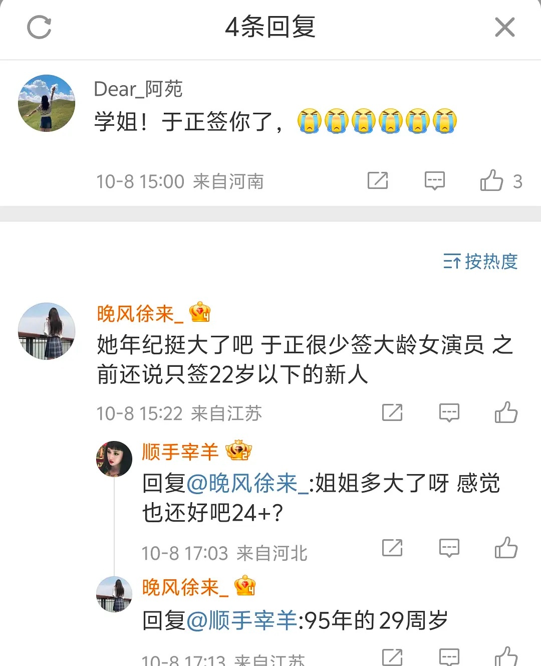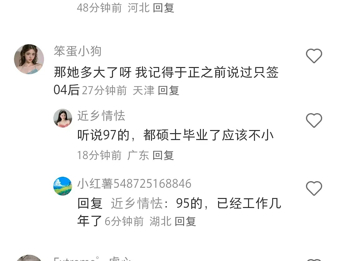 于正新签的那个艺人可能是95年的