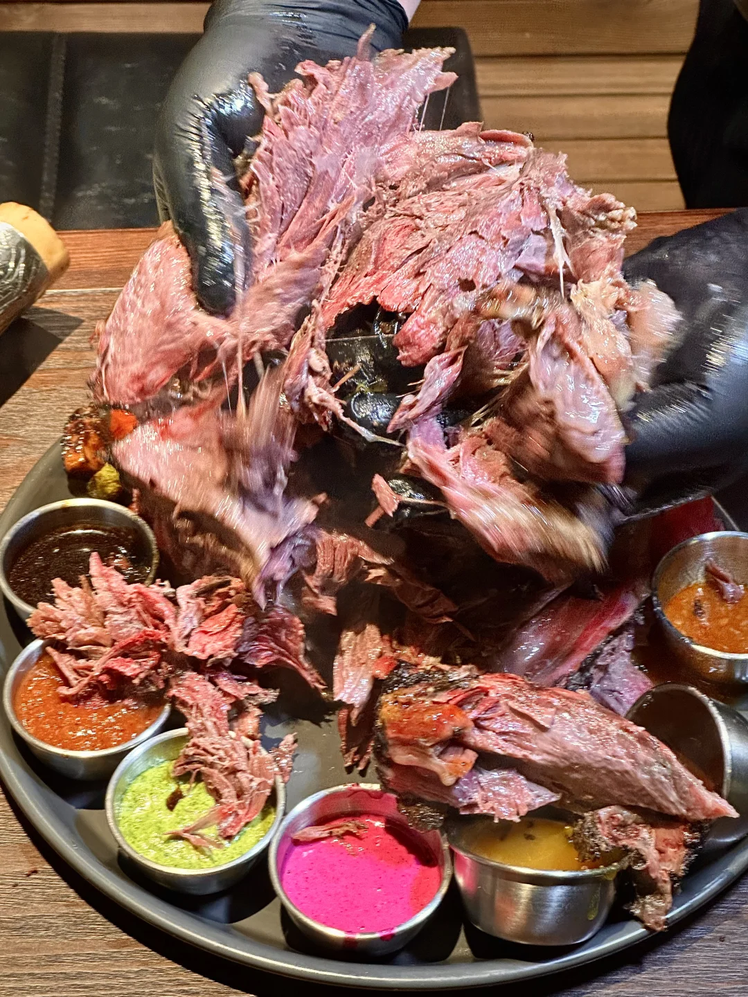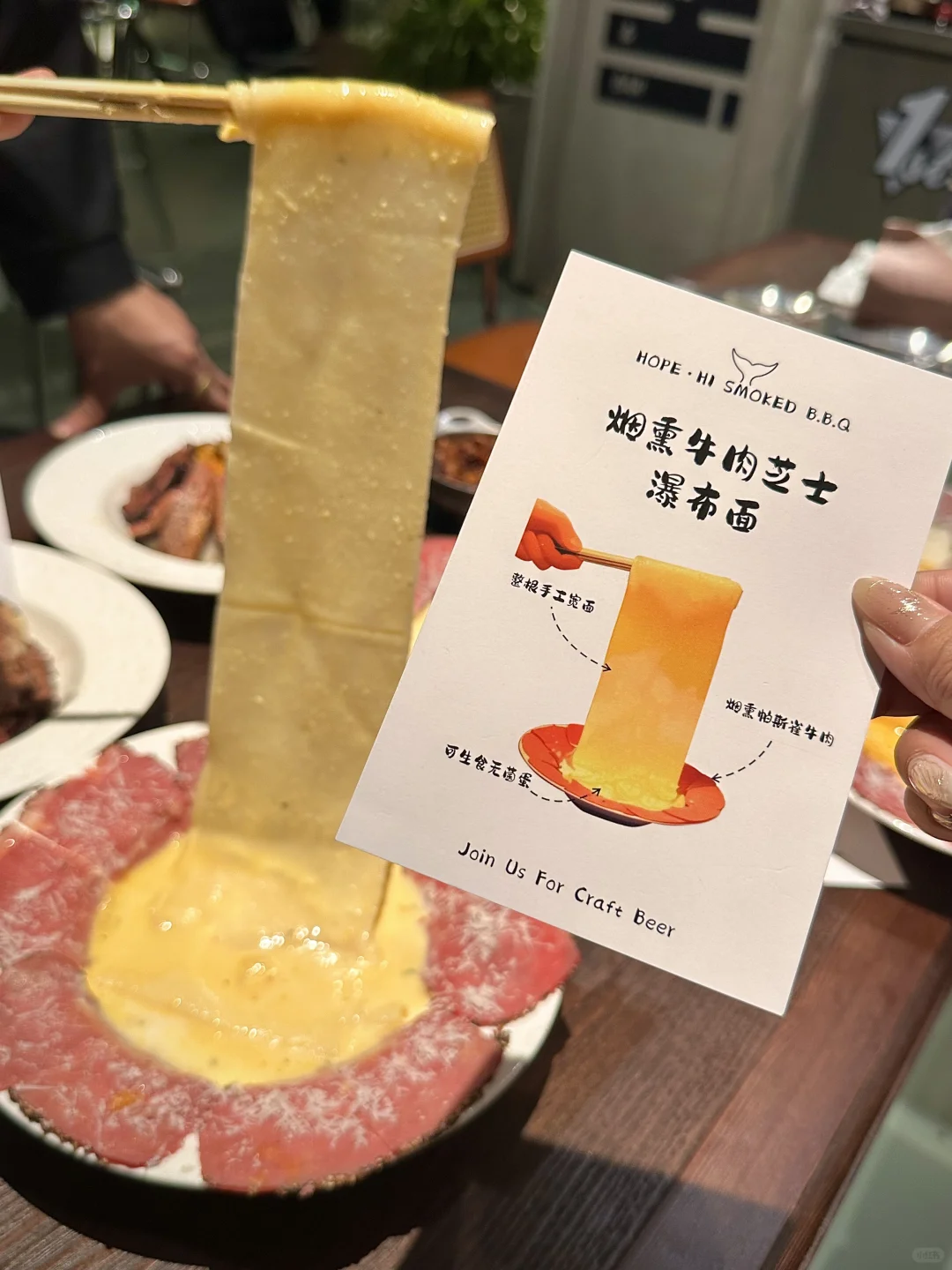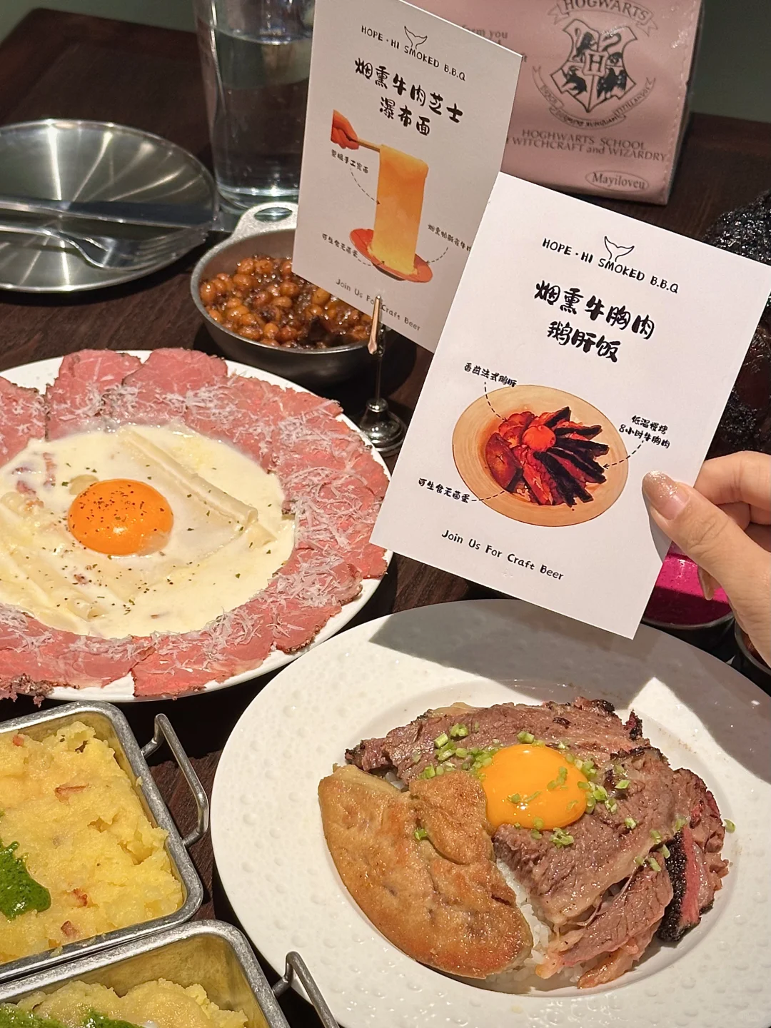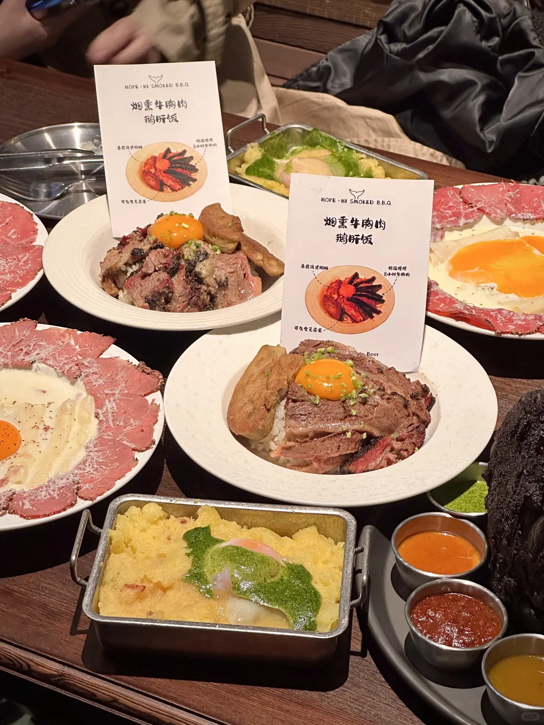 谁懂啊!!跟图片一模一样!! 🥩烟熏牛胸肉鹅肝饭 🍝烟熏牛肉芝士瀑布面 好香好香…氛围好 拍照也巨巨巨好看~