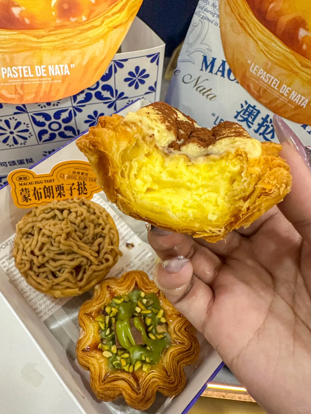长春终于也有啦!!好香好香… 黄油年糕🧈提拉米苏🍫开心果 酥松的可颂挞皮➕滑嫩的葡挞内馅 真的真的好吃亖啦!!!