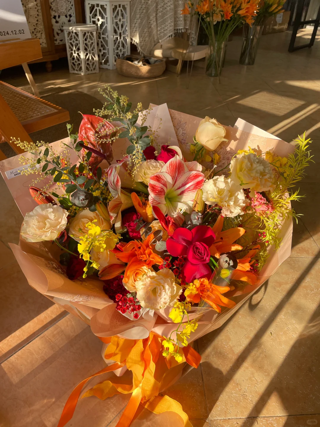 佛山花店 花店日常 高饱和度花束 复古色系花束 橙色系花束 生日花 自由搭配花束 长辈花束 顺德碧桂园花店 阳光就是最好的滤镜