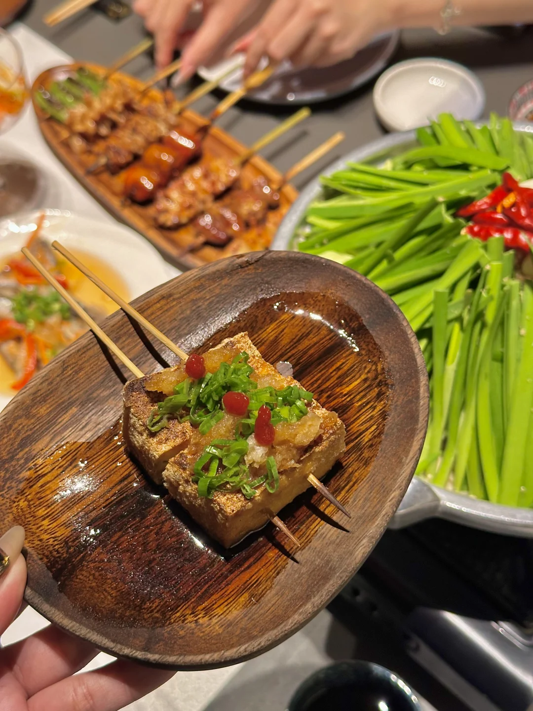 和好朋友一起吃烧鸟居酒屋,怎么会不幸福呢! 咕嘟咕嘟的牛肠锅 油润鲜香 连配菜都好吃 还有头回尝试的🐷猪平烧 嫩嫩的厚蛋烧➕猪排的神仙组合 烧鸟依然稳定发挥 七分熟的鸡肝每次必点 新上的黄金豆腐配梅子酱真的好喜欢 这样的宝藏小店我真的会反复爱上!!