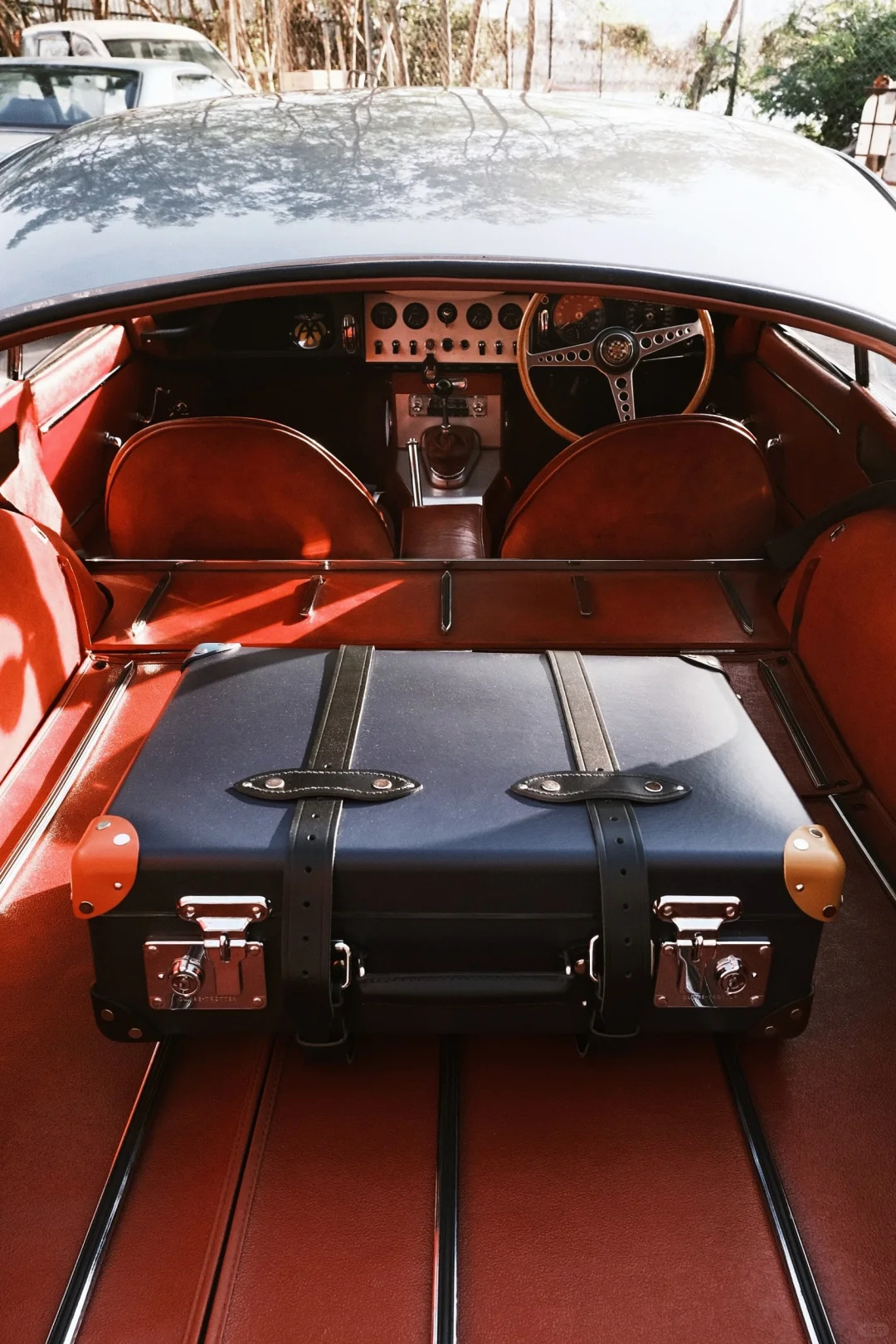 之前介绍过给E-type搭配的行李箱,是彰显经典英伦风的百年行李箱品牌Globe-trotter (1897)。这款Paul Smith x Globe-trotter联名全球仅120件,使用经典Signature Stripe彩色条纹织带融合入原箱简约质感的风格,呈现英国品牌对手工设计及英伦美学之追求。