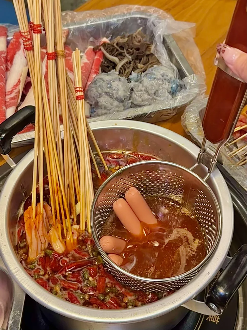 长春的!!长春的!! 一个月能吃5678次的宝藏小店… 没啥服务 基本全靠自助 一直开到12点 妥妥的夜宵好去处 他家🉑自带酒水和涮品 一定一定要拿佳木斯涮面和烤冷面 配上毛葱蒜蓉酱 嘎嘎好吃 还有🆓小狗肠哦哈哈