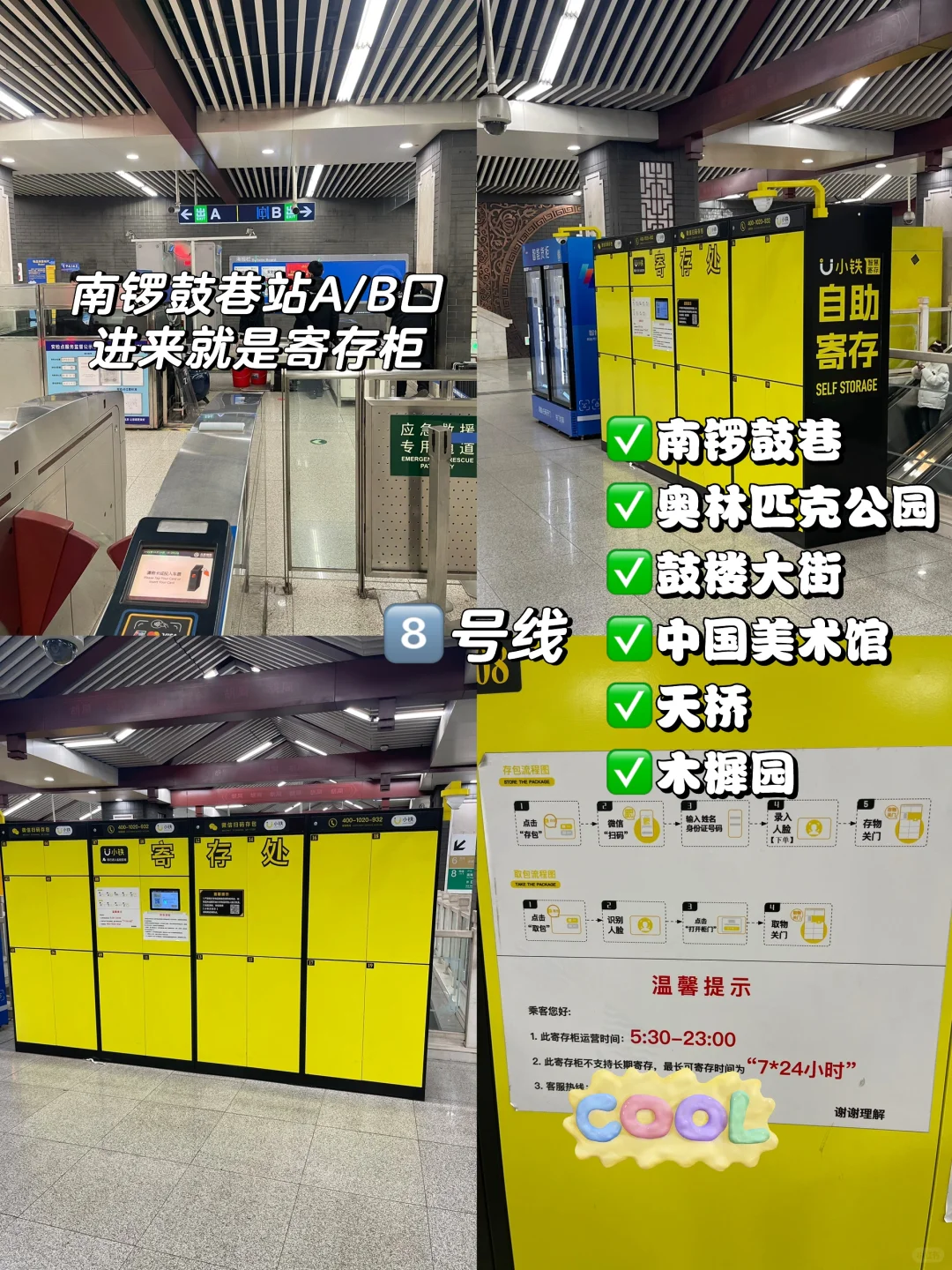 ▫️前门/大栅栏/北京坊:前门地铁站/天安门/前门大街景区寄存点(超市)⏰ 7:00-22:00