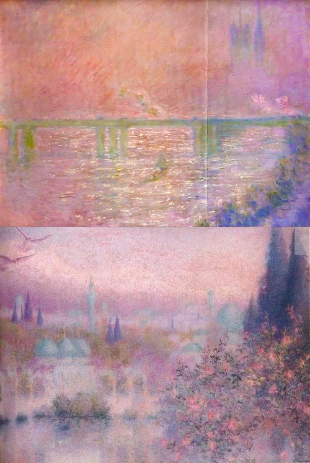 🫧 ✿ ⋅.˳˳.⋅ॱ˙ ˙ॱ⋅🍧 莫奈作品中粉色的不同运用和表现层次 ☁️ 一朵云,一朵粉边的白云 突然沉入无垠,扇动翅膀 我为它哭泣,我于是知道 我觉得落日就像天堂 🪶茨维塔耶娃 一朵云 . .