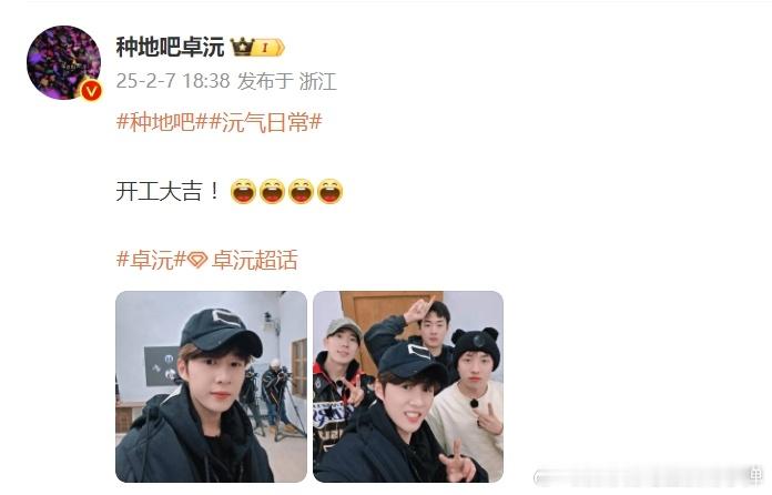 卓沅初十开工大吉 卓沅晒一号房合照 大年初十,卓沅以一号房合照开启工作,开工大吉,期待他在新领域的表现。