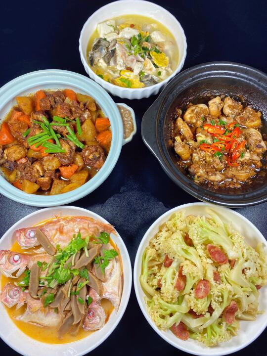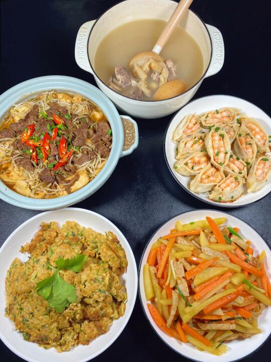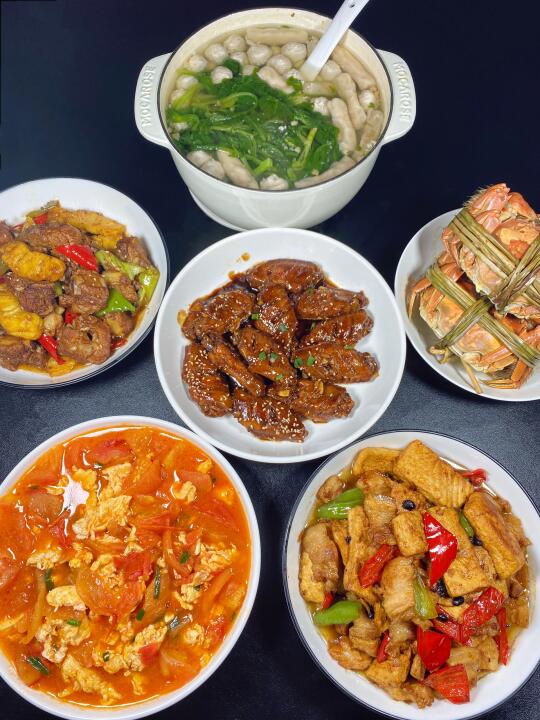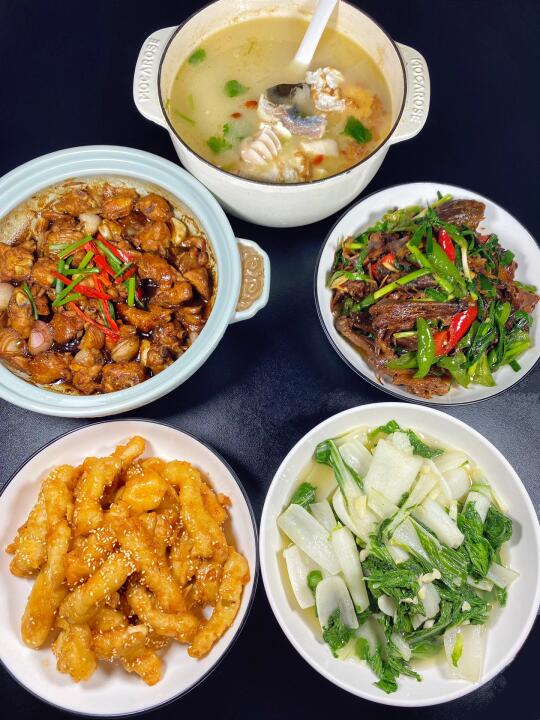 今天晚餐长这样 有你们爱吃的菜吗?经常有姐妹要图片,这就来啦,自己做的家常菜真的是越吃越香,每天都要撑到扶墙,家里两个宝贝也吃得很开心,真的满满的幸福感~家人们都做起来吧!