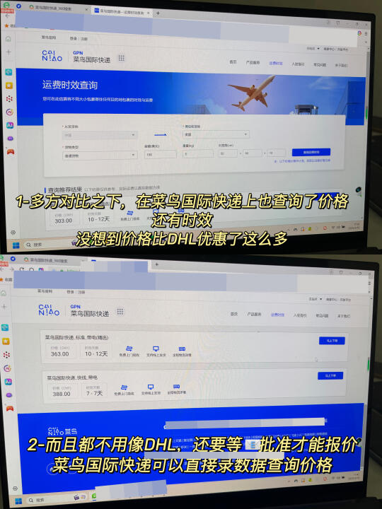 比如上次1个箱子样品包裹到英国DHL报价就要1.7k。重量才5kg,这个数据真会把客户吓跑。虽然时效3-5天很吸引人(但还无法排除遇到海关查验时间)。客户根本不接受。之后又问了菜鸟国际快递,发现发欧洲/英国 快线 普货 菜鸟7日达的价格比这些国家快递便宜不仅仅是10%,而且时效也快,只要7天左右,这个真把客户乐得。实际上,从我安排发货到客户收货,总才用了6天。客户收到货之后不仅对包裹派送时效上很满意,对样品也满意,马上下了订单。