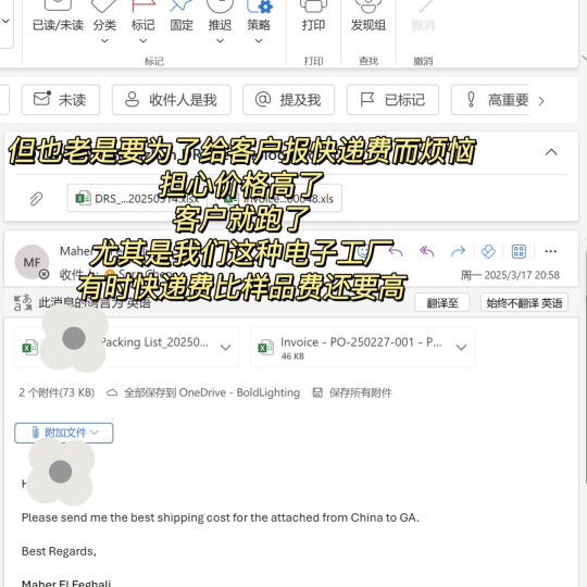 做外贸,还有不但要烦恼客户对产品的客诉,还要烦恼帮客户沟通运输费用。我们做电子照明这块,客户会一直需要样品。但是可想而知,这个包裹包装完成后,运费比样品还要贵….