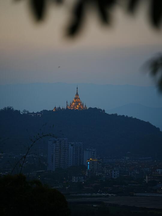 傍晚时分,导航芒市好望角 ,落日超治愈。山路可眺望金银塔,山脚的村子烧烤不错。