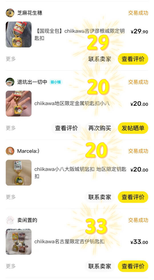 💰Chiikawa钥匙链3个一套只要99,还包邮,运气好的话还能淘到单只超便宜的款,20 一个真的好划算,简直是收集党的福音!其他平台一个就要快 40 了🥲 关键是闲鱼上的卖家都好nice,有的还送了小贴纸和别的小东西,感觉像是收到了一份小惊喜🎁