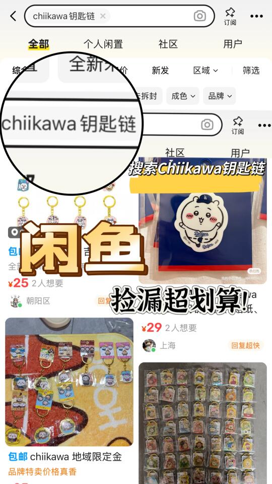 🔍在闲鱼上搜“Chiikawa钥匙链”,真的能刷到好多宝藏!