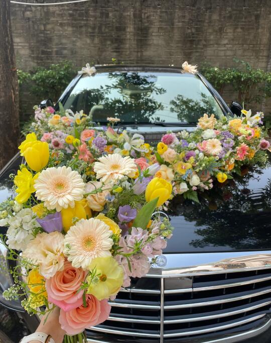 佛山花店 花店日常 顺德碧桂园花店 车头花装饰 小众手捧花 婚车花艺 鲜花布置 婚礼花艺 春日系列