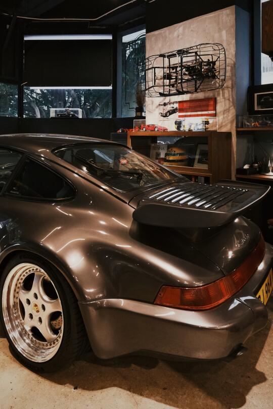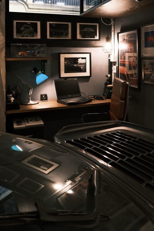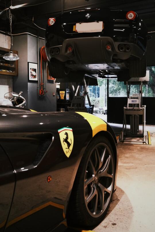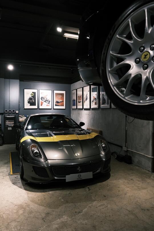 水泥墙面上的汽车艺术,Rocket Espresso咖啡吧台弥漫着香气,环绕经典车展台的玻璃展柜里陈列着车模与汽车周边——机械美学与生活气息交织共生。 因近期结识主理人,在交流中深切感受到他对汽车文化的执着近乎虔诚,如同遇见知音。纯粹源于数十年收藏热忱,他以副业形式打造了这个车房空间,提供车辆交易、机械维修、汽车生活周边等服务。当多数车商沉迷于交易数据时,他仍坚持亲手修复奔驰R107,为买家翻新捷豹E-Type S1.5,并将法拉利599改造成GTO版手动挡。 这里不见冰冷的「请勿触摸」警示,也没有工作人员的强行推销,唯有爱车者的精神驿站。 📍 Carfarm,葵涌业成街16-18号