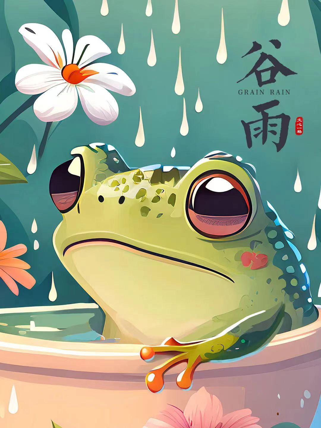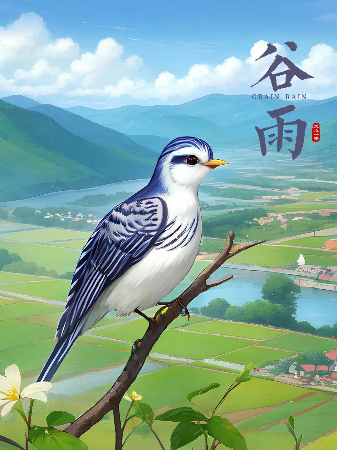 谷雨时节春意浓, 细雨绵绵润花红。 山间溪水潺潺流, 田野麦苗绿油油。 文案:文心一言 设计:文心一格