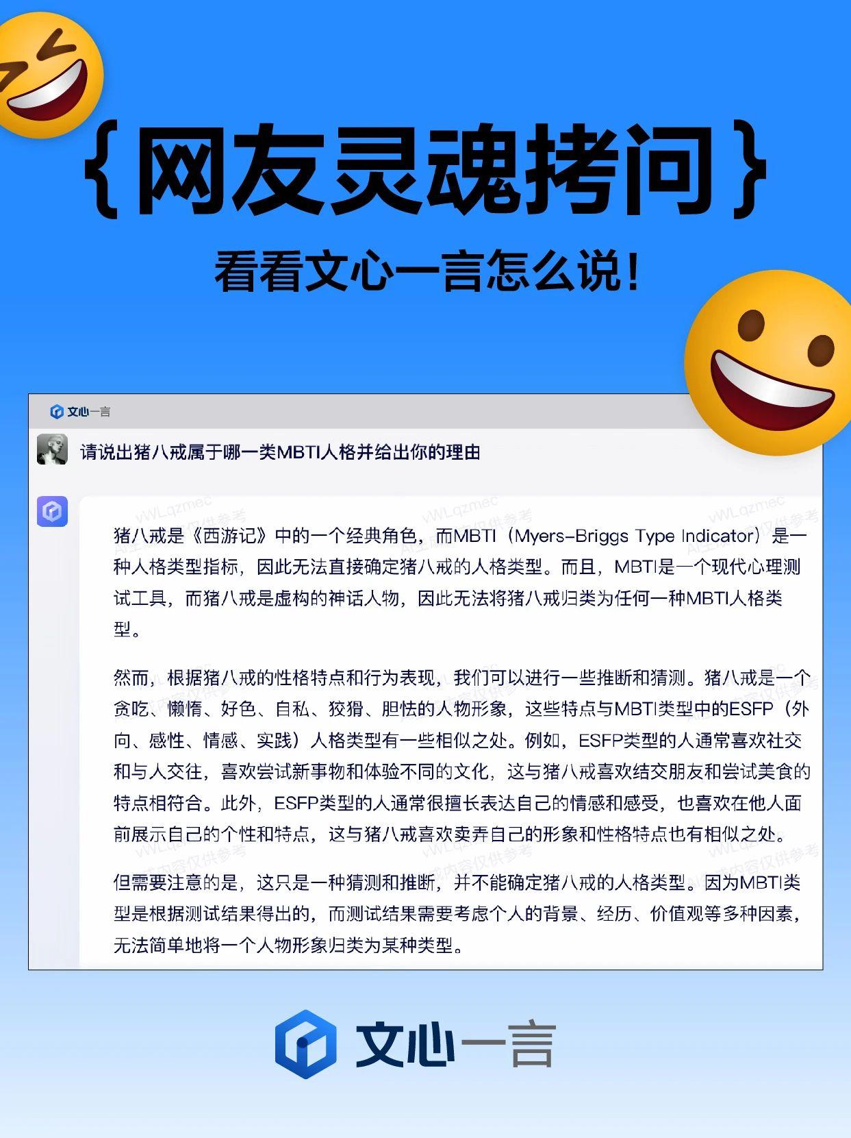 文心一言,我来了! 有用、有趣、有温度! 既能写文案、读文档,又能脑洞大开、答疑解惑~ 还能倾听你的故事、感受你的心声。 这,就是你的智能伙伴———「文心一言」。 8月31日,文心一言向全社会全面开放。 广大用户可以在应用商店下载“文心一言APP”或登陆“文心一言官网”()体验。