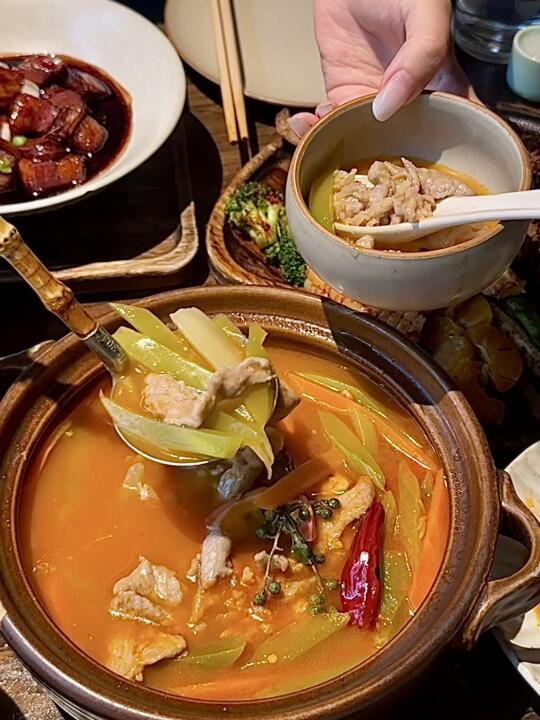 很难想象这竟然是人潮拥挤的桂林路 简直长春版有风小院🎋世外桃源一样 很多小细节 拍照真的巨巨巨好看、 重点是!!菜也好吃… 入口即化的红烧肉配松松软软的酒酿馒头 就一个字👉太香啦!! 还有油呛双脆、百香果酸汤松板肉、青芒芭乐无花果 好多菜在长春都没有见过 打算二刷!!