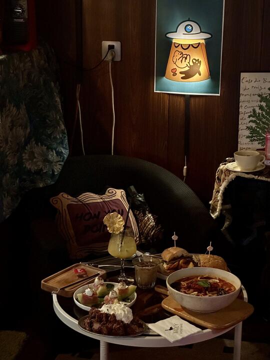 一直以为这种店只有漂亮… 没想到!!菜品居然还很!好!吃! 牛肉芝士恰巴塔🥪牛排🥩意面🍝 还有各种小甜品🍰随便点就好… 晚上还有各种漂亮微醺酒🍸 再也不用羡慕北上广了!! 每个角落的布置都很用心 像在🧸自家客厅一样 店里一直在放《老友记 》 随便播到哪集都能看进去~ 跟朋友们吃吃喝喝聊聊天拍拍照 真的又放松又快乐🎉