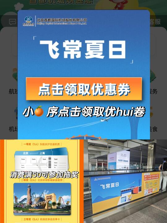 只要在零售餐饮门店消费50元即可有机会抽取“首都机场惊喜大奖”,万一能抽中环球影城的门票呢?北京不白来啊[派对R]