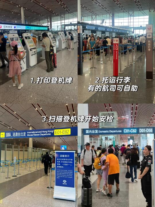 🛄之后找到国内/国际出发标志开始安检