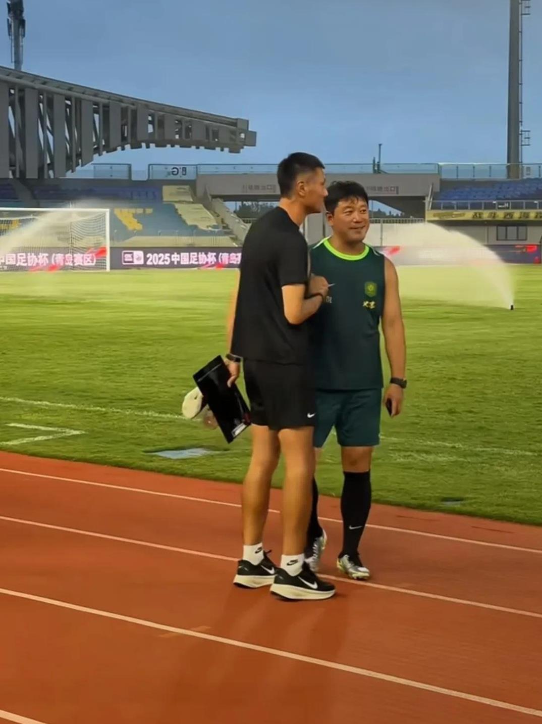 足协杯淘汰赛前的国安元素! 北京国安做客青岛西海岸,今天晚上的足协杯四分之一淘汰赛将在青岛开赛。晚间两队踩场两队中的老熟人相见分外亲切,邵佳一与塞蒂恩两位主教练之间的惺惺相惜,隋东亮 李磊 杨立瑜与邵佳一之间的相互寒暄,包括三名新疆小将之间的互动,都让人看到了北京国安元素的存在!场上是对手、场下是兄弟表现得淋漓尽致!